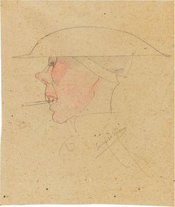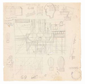 Matita su carta, cm. 26,5x14,8 1952-53 Titolo in basso a destra: Buongiorno Signor Generale; al verso: timbro [..]