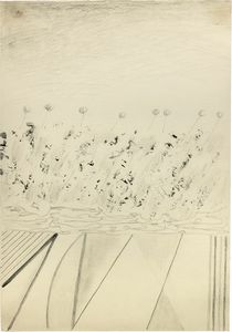 Tecnica mista su cartoncino, cm. 50x70 1963 Firma in basso a destra: Melotti; titolo e firma al verso: In memoria [..]