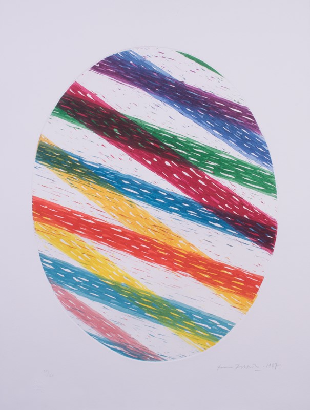 1987 Firma e data a matita sul margine in basso a destra: Piero Dorazio 1987, tiratura a matita sul margine in basso a sinistra: 50/120, timbro a secco: Grafica d'Arte Lombardi, Roma.
