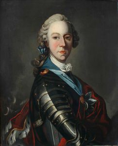 Scuola del XVIII secolo Ritratto di uomo con cane