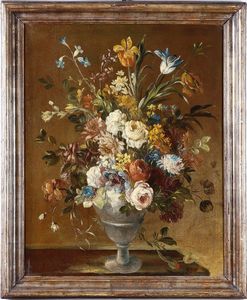Scuola del XX secolo Coppia di natura morta con vaso di fiori