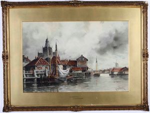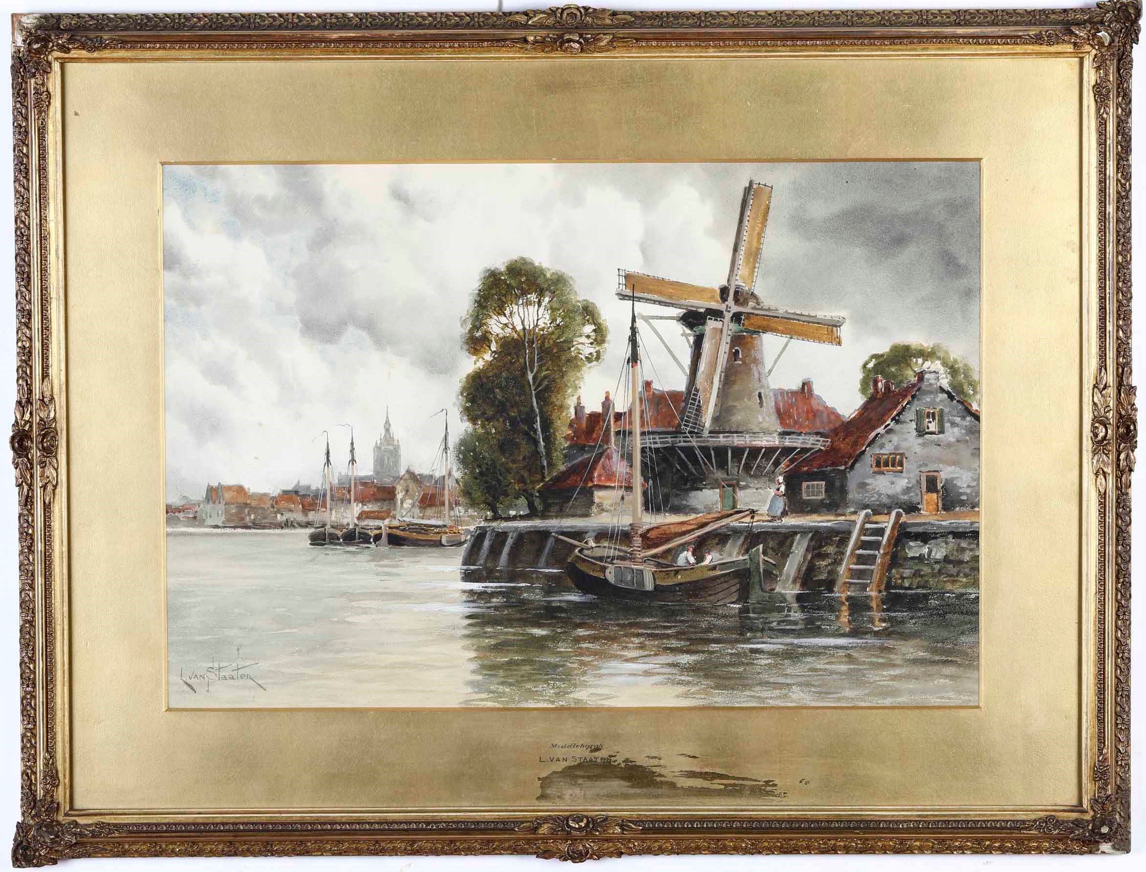 Louis van Staaten (1836-1909) Villaggio sul canale Near a Rotterdam e Scorcio con [..]