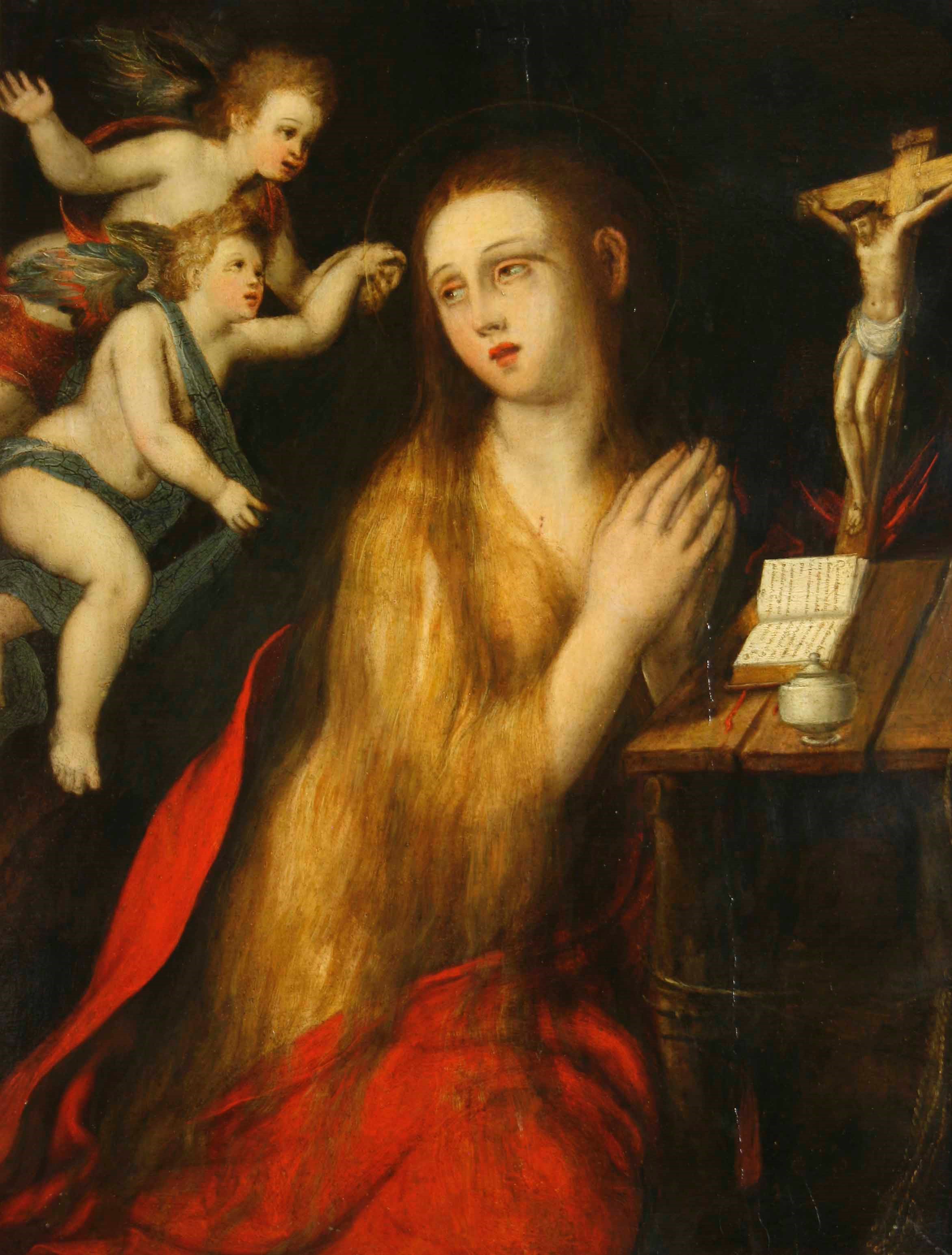 Scuola del XVII secolo Maddalena penitente con angeli
