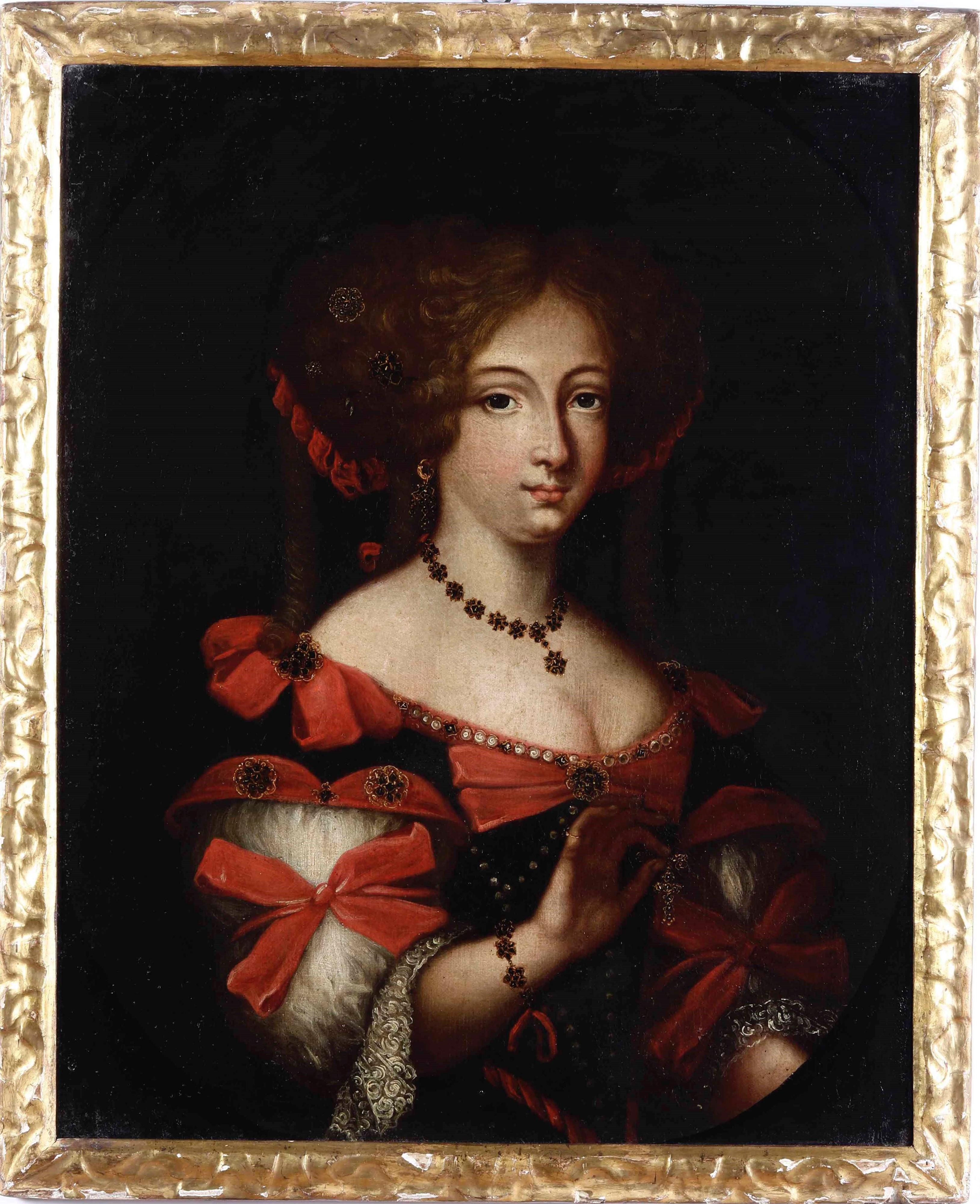Scuola del XVII secolo Ritratto di dama con abito adornato da fiocchi