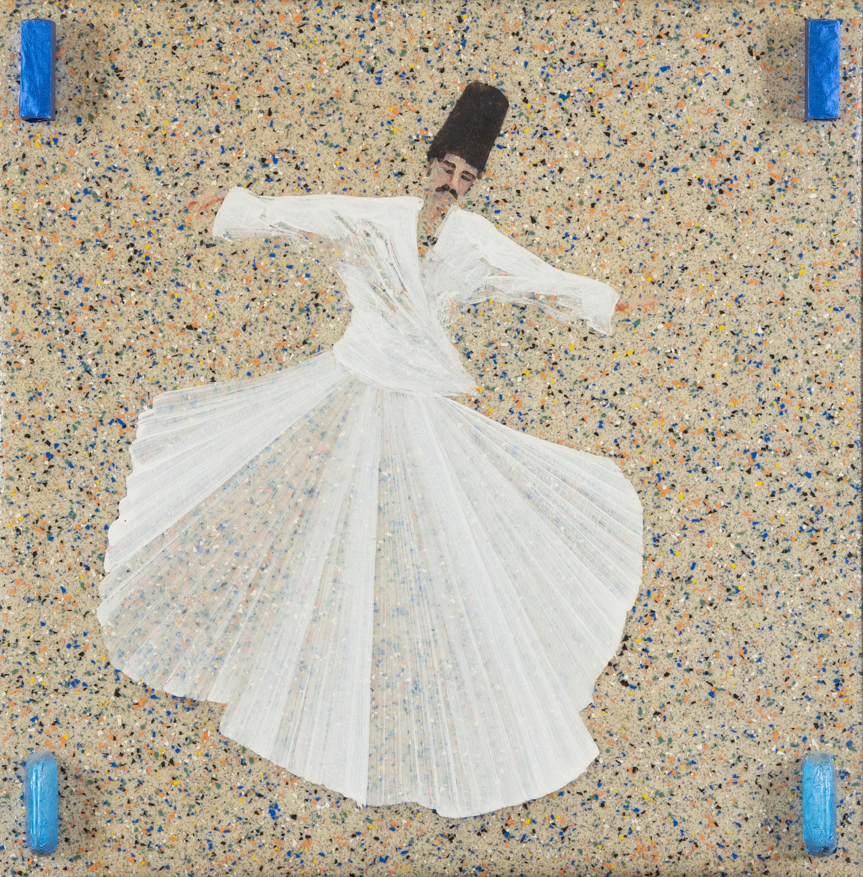 Olio e applicazioni su linoleum, cm. 40x40x2