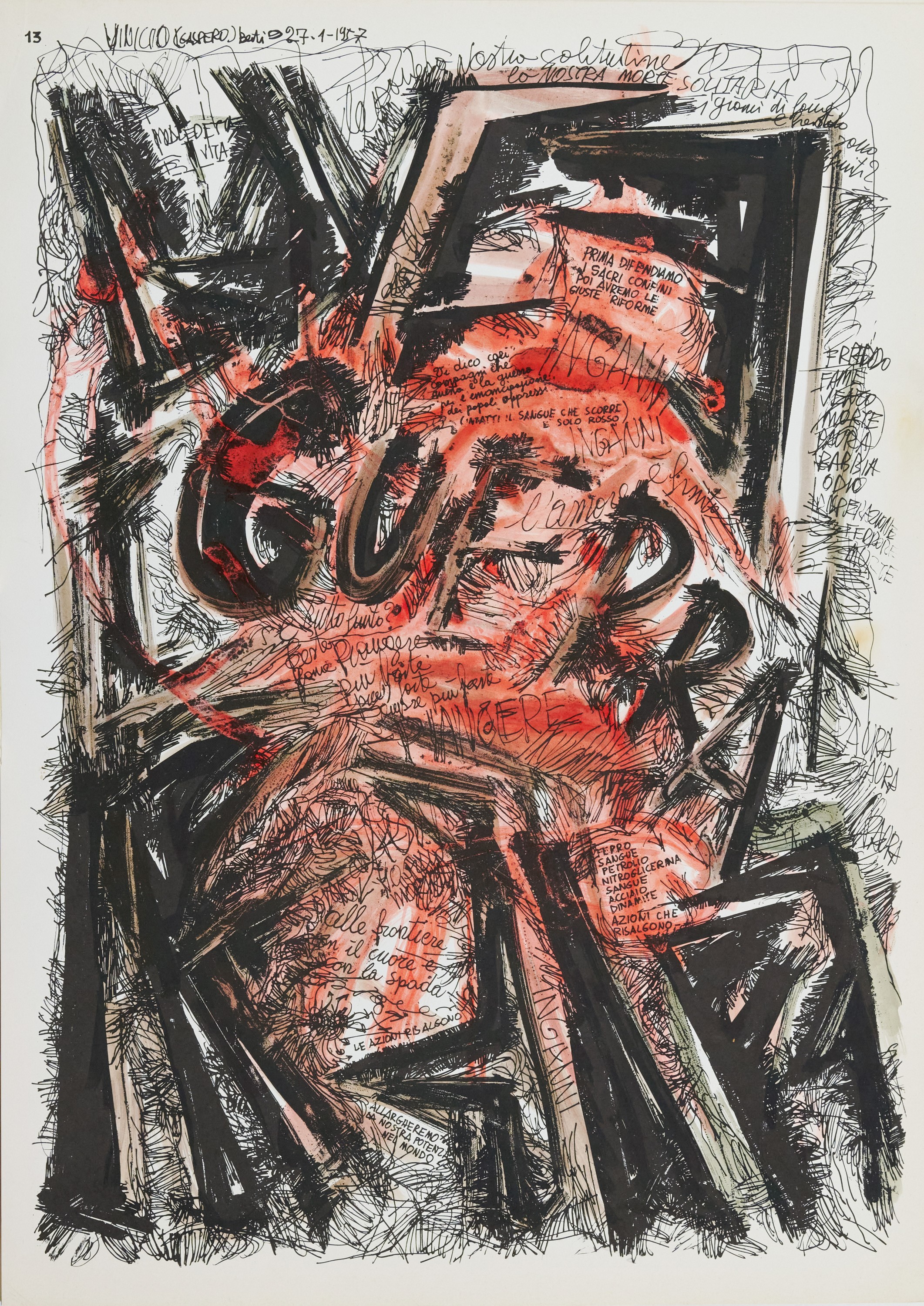 1956 Cartella contenente trenta litografie su carta di cm. 44x32 numerate Dal n°1 al n°30 in alto a sinistra, firmate in basso a sinistra e datate dal 1956 al 1958. La cartella è completa di testo introduttivo di Egidio Mucci.