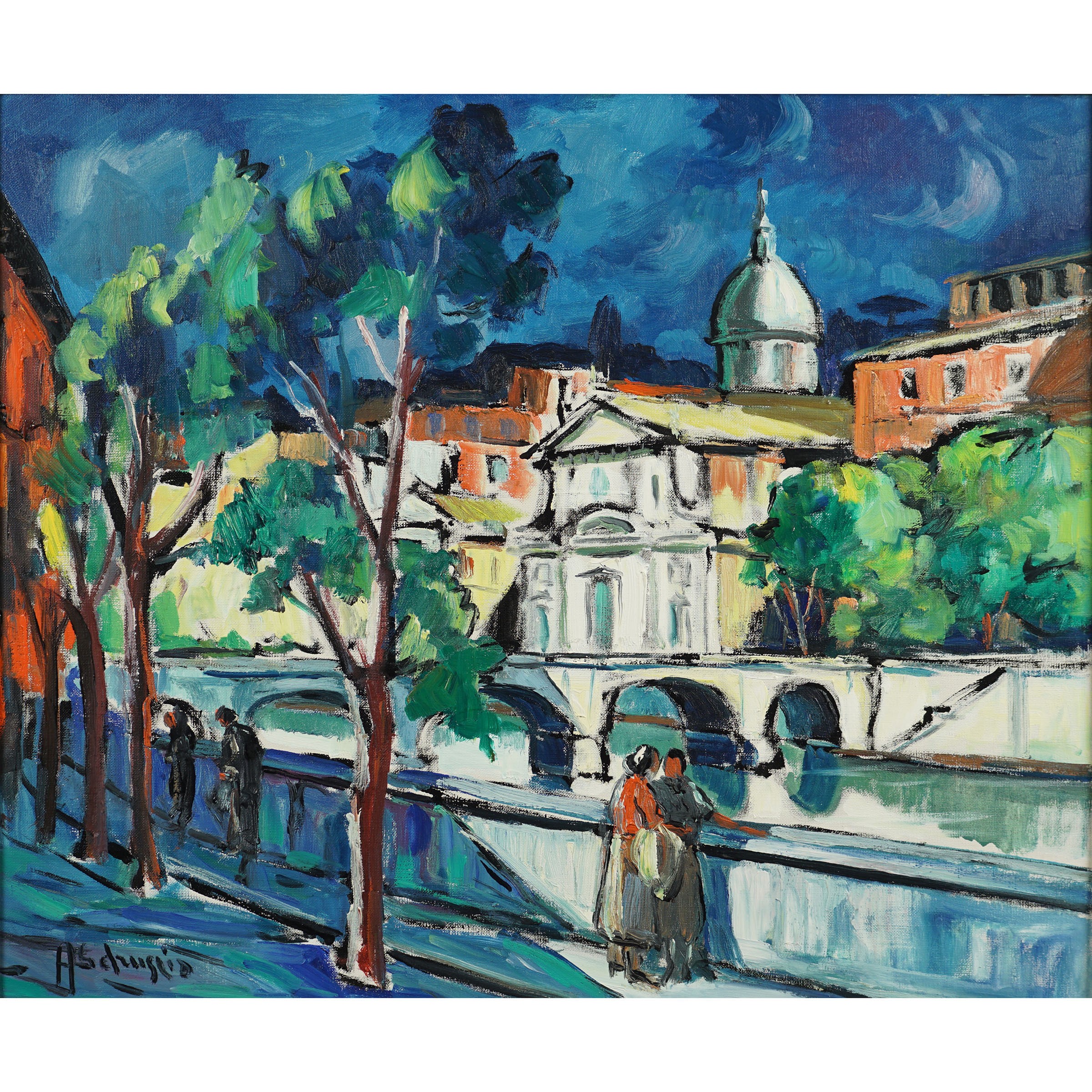 Kirkkonummi 1910 - New York 1961 Lungotevere, olio su tela, firmato in basso a sinistra