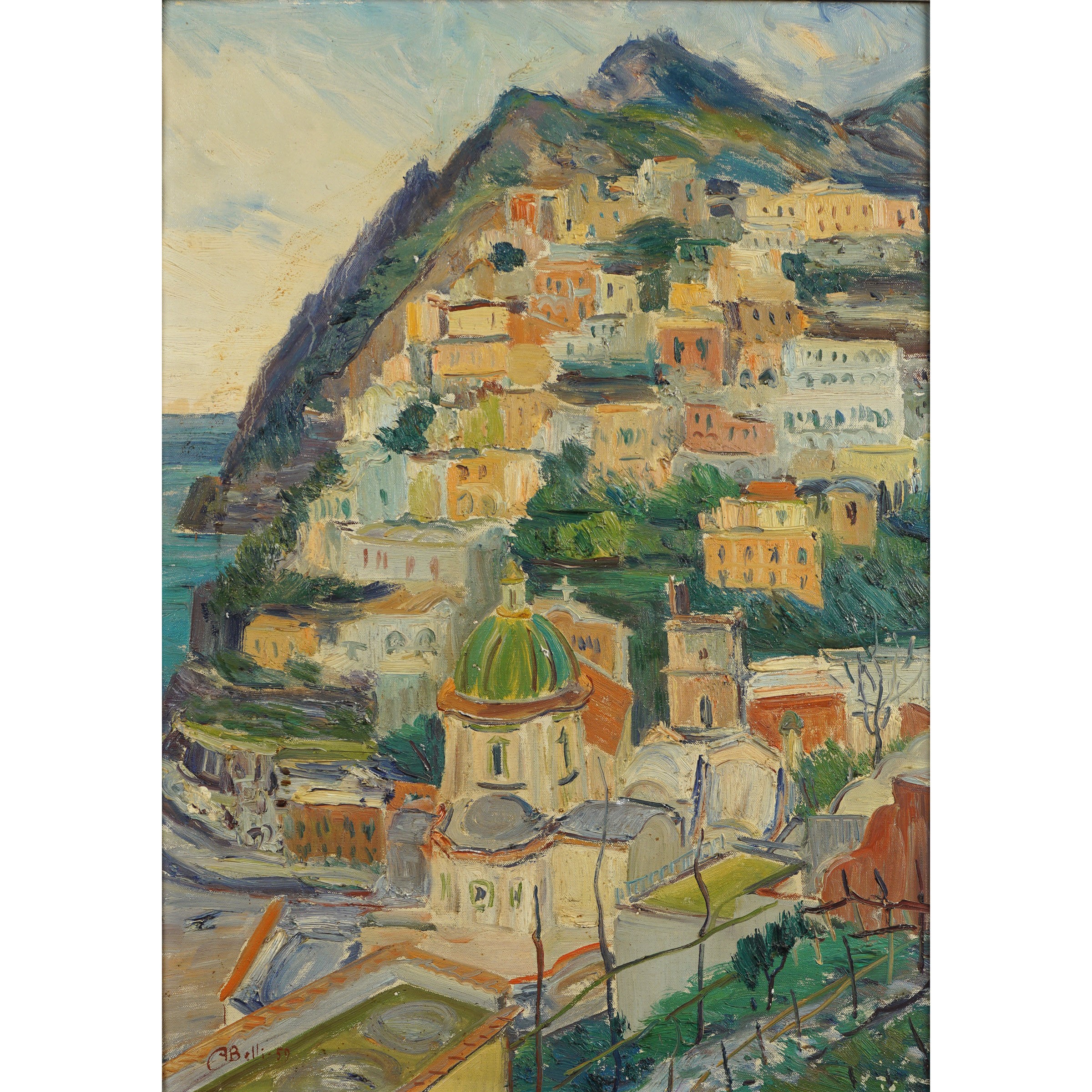 Italia XX Sec. Veduta di Positano, olio su tela, firmato in basso a sinistra