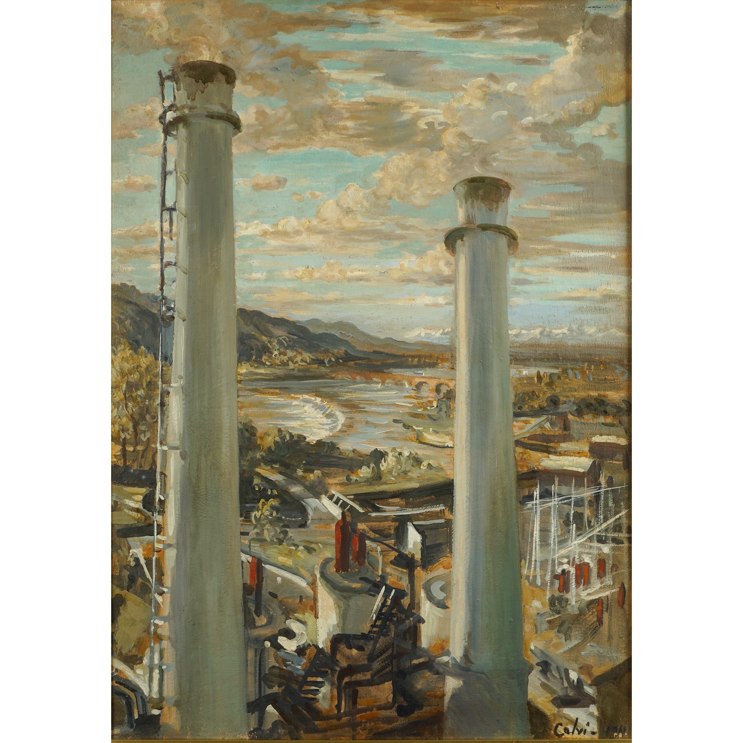 Italia XX Sec. Paesaggio industriale, 1961, olio su tela, firmato e datato in basso a destra