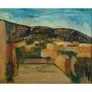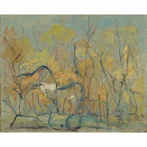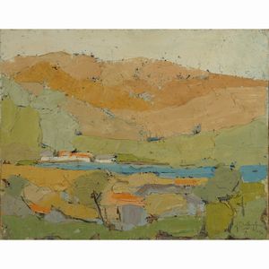 58x48 cm. Monza 1906 - Renate 1994 Paesaggio, 1952, olio su tela firmato e datato in basso a destra