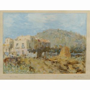 29x39 cm. Italia XX Sec. Paesaggio, tecnica mista su carta, firmato in basso a destra