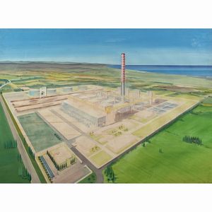 93x125 cm. Italia, XX Sec. Centrale di Gela, 1987, tecnica mista su carta, firmata e datata in basso a destra, [..]