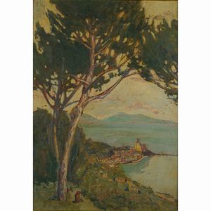 46x52 cm. Italia XX Secolo Costiera, olio su tela, firmato in basso a destra