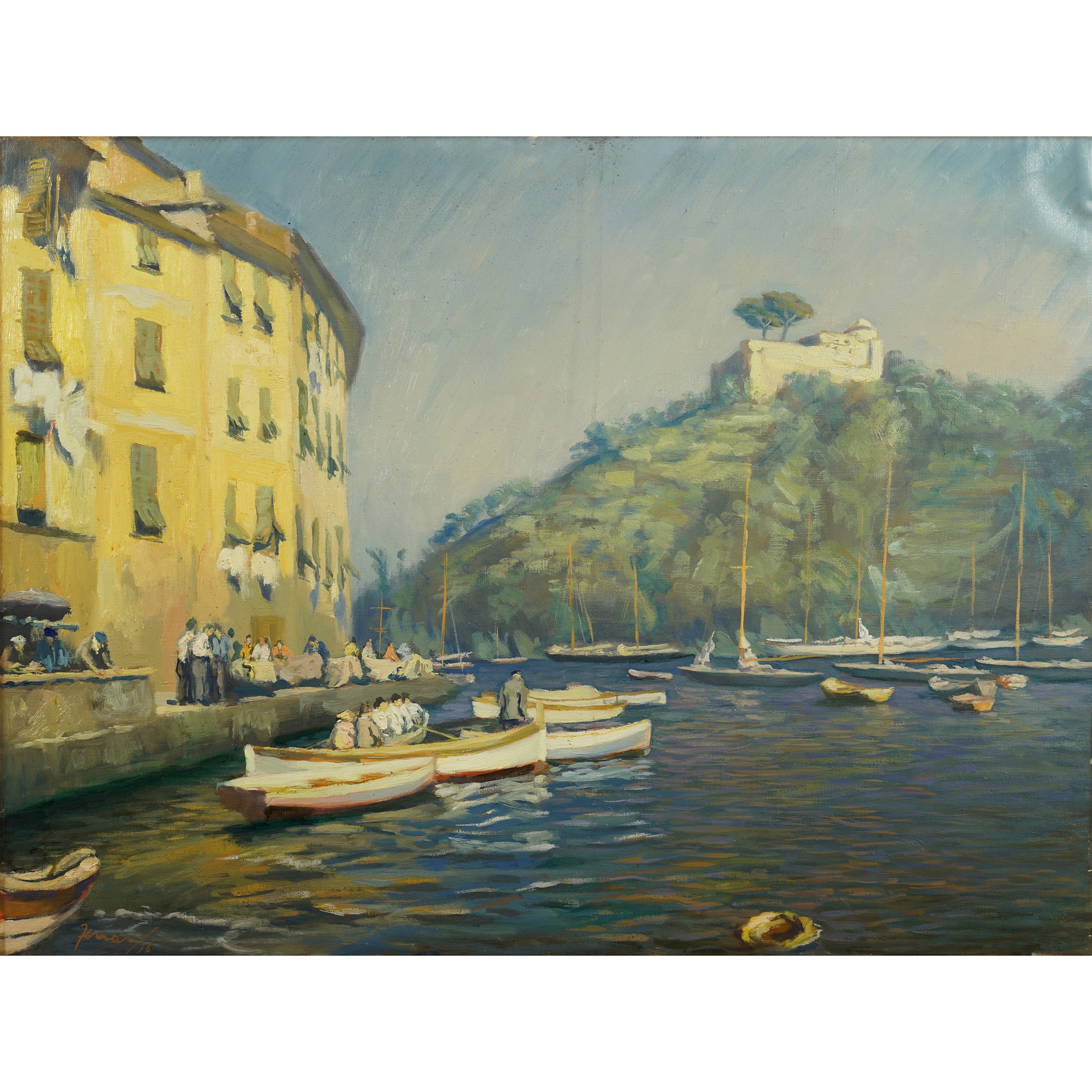 Italia 1917 - 1979 Porticciolo ligure, 1956, olio su tela, firmato e datato in basso a sinistra