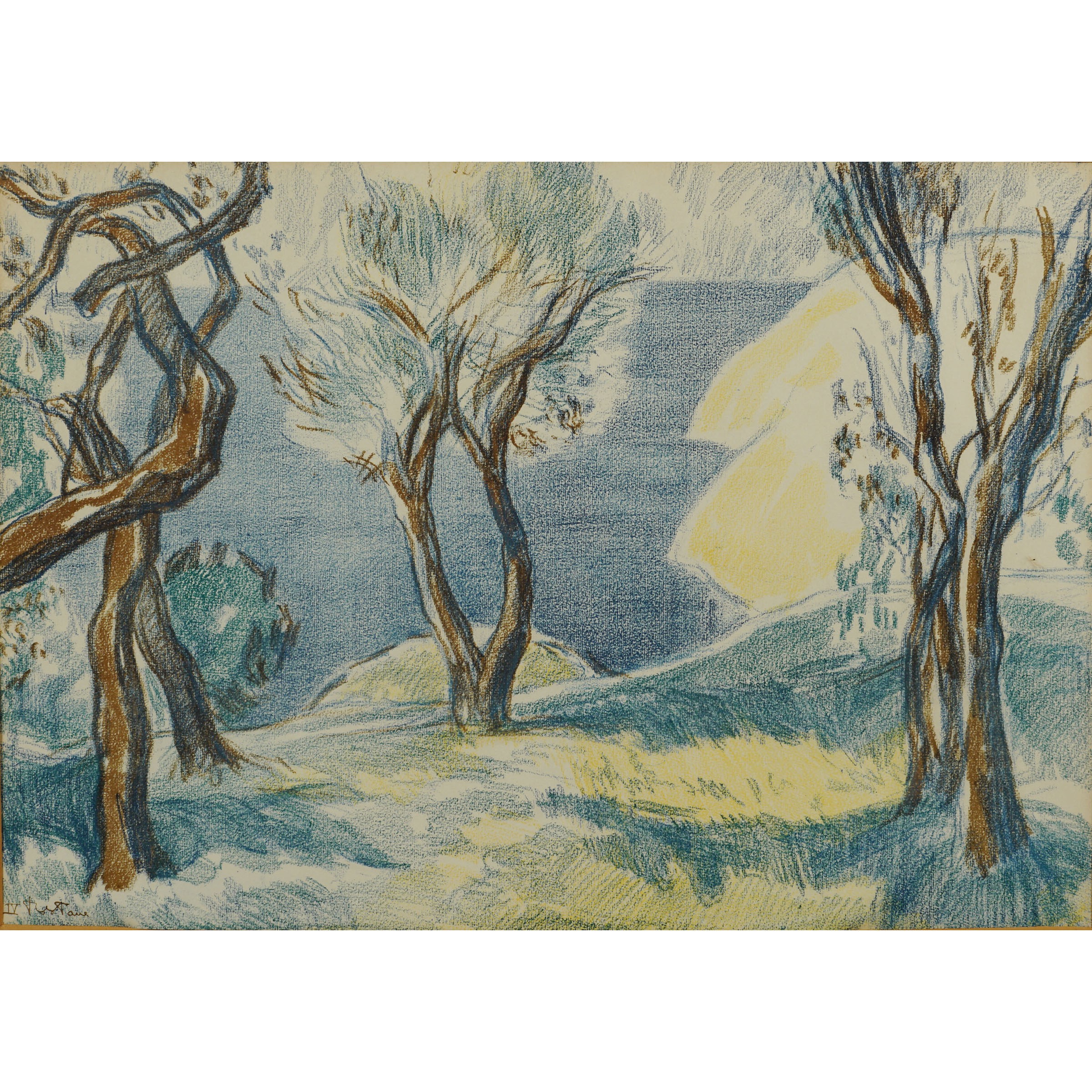 Italia XX Sec. Paesaggio, pastello su carta, firmato in basso a sinistra