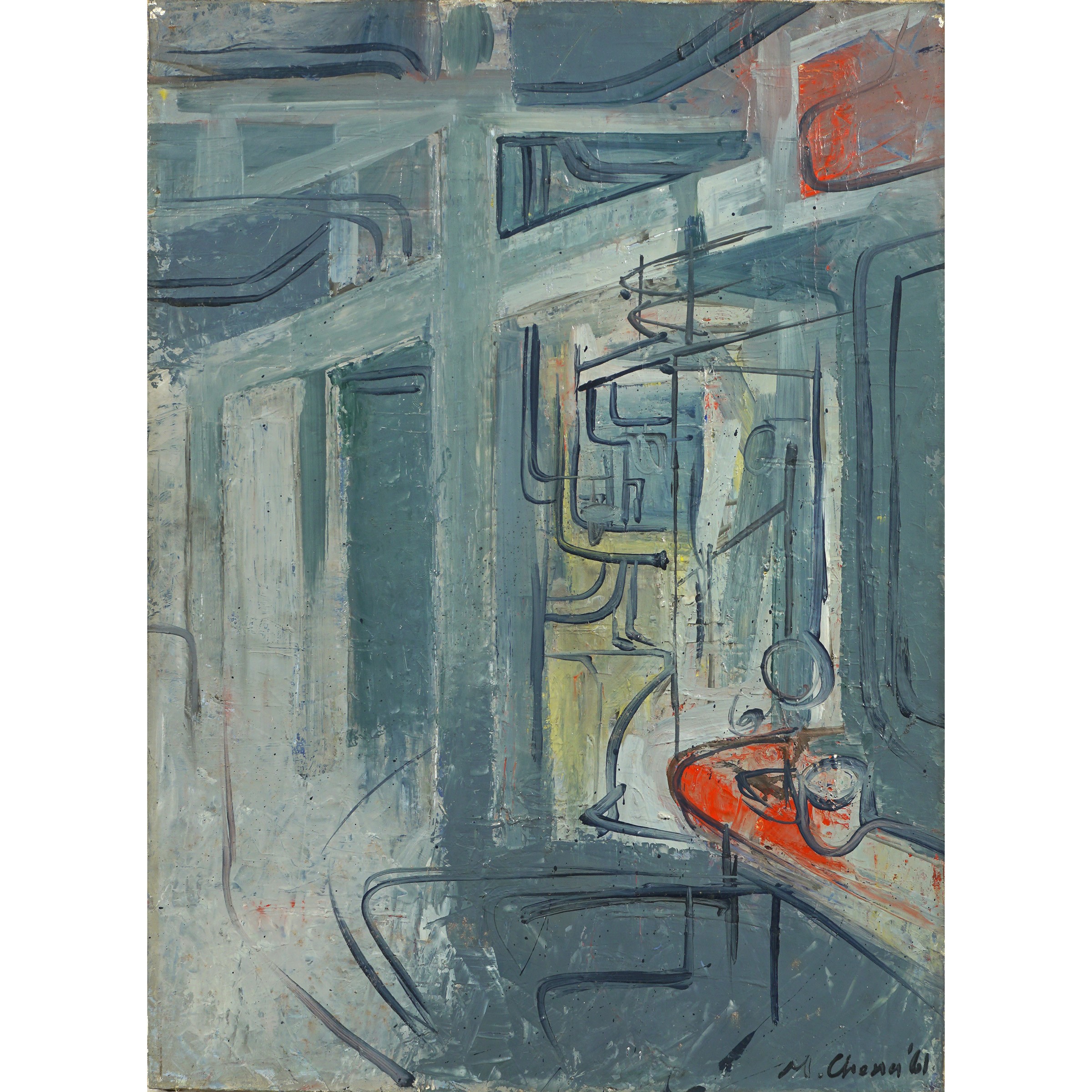 Italia XX Sec. Interno di fabbrica, olio su tela, firmato in basso destra