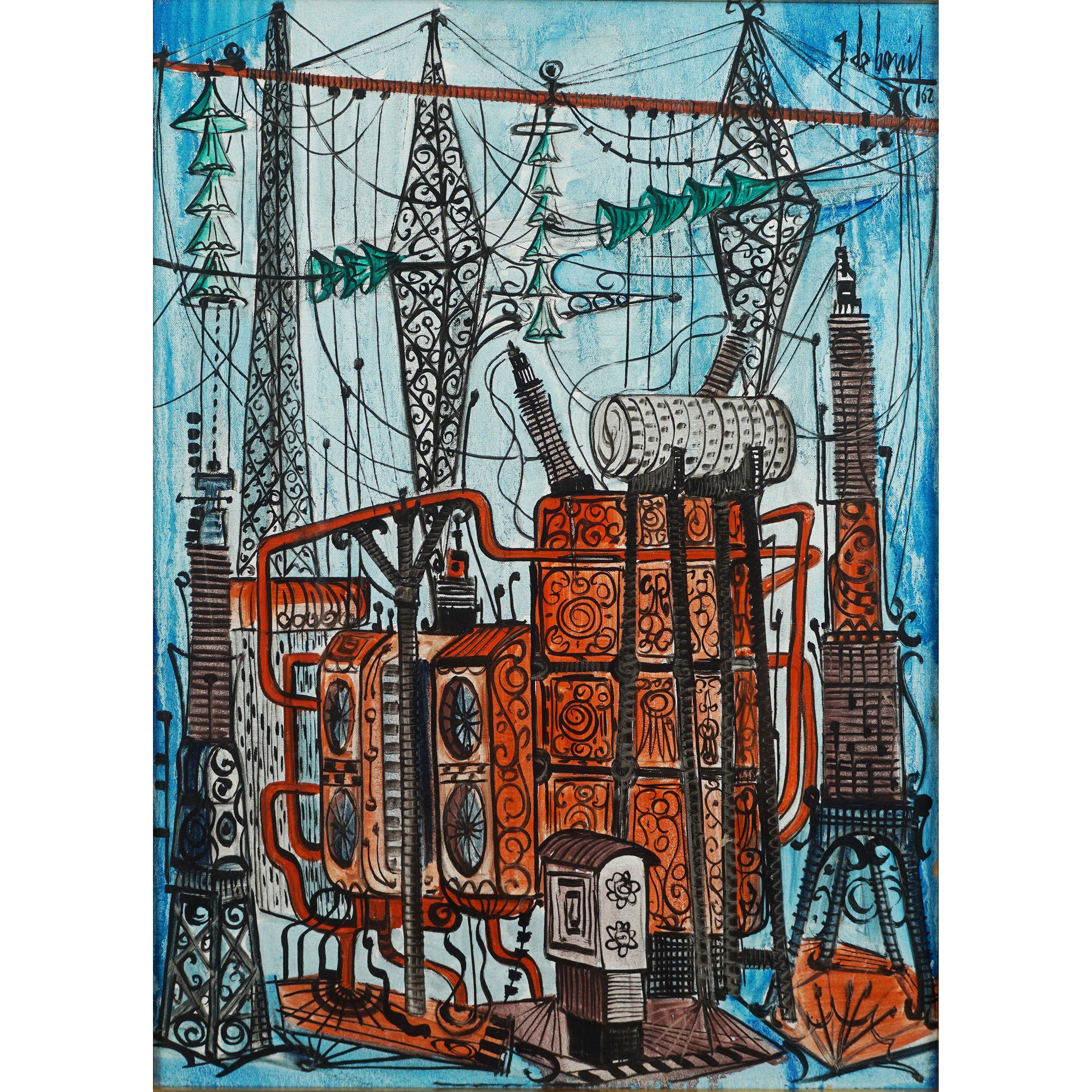 Torino 1931 - 2009 Stazione elettrica di trasformazione, olio su tela, firmato in alto a destra