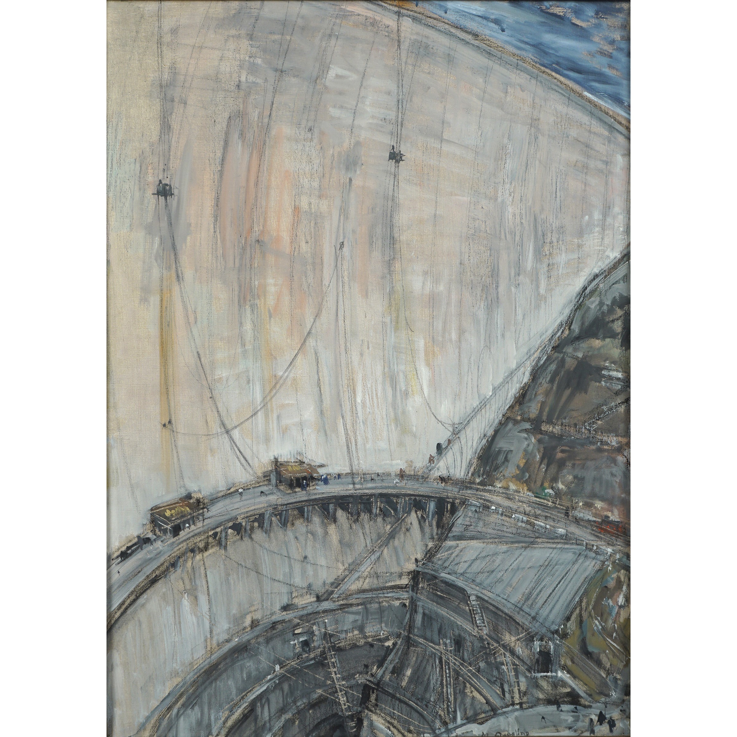 Refrancore 1899 - Torino 1982 Diga con operai al lavoro, olio su tela, firmato in basso a sinistra