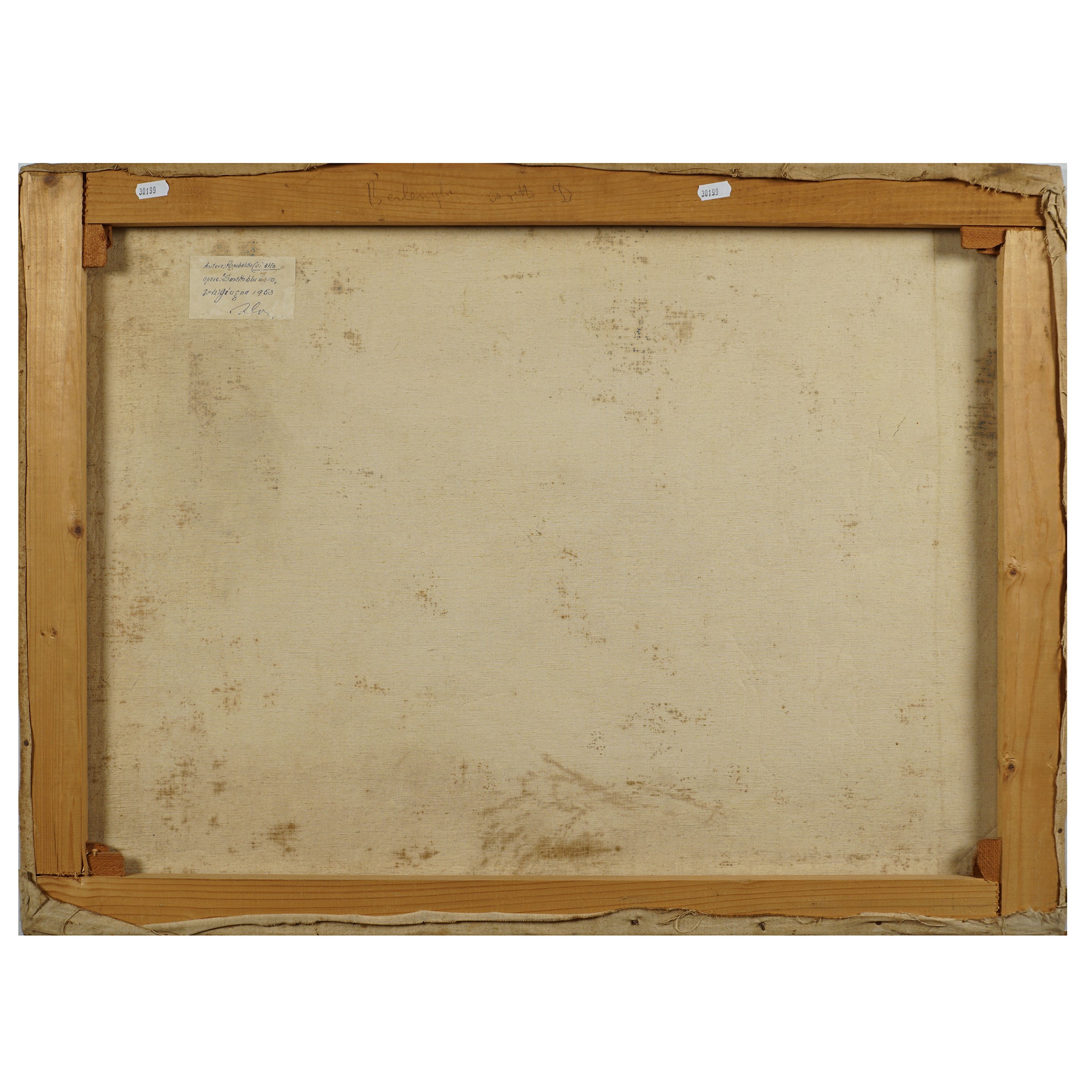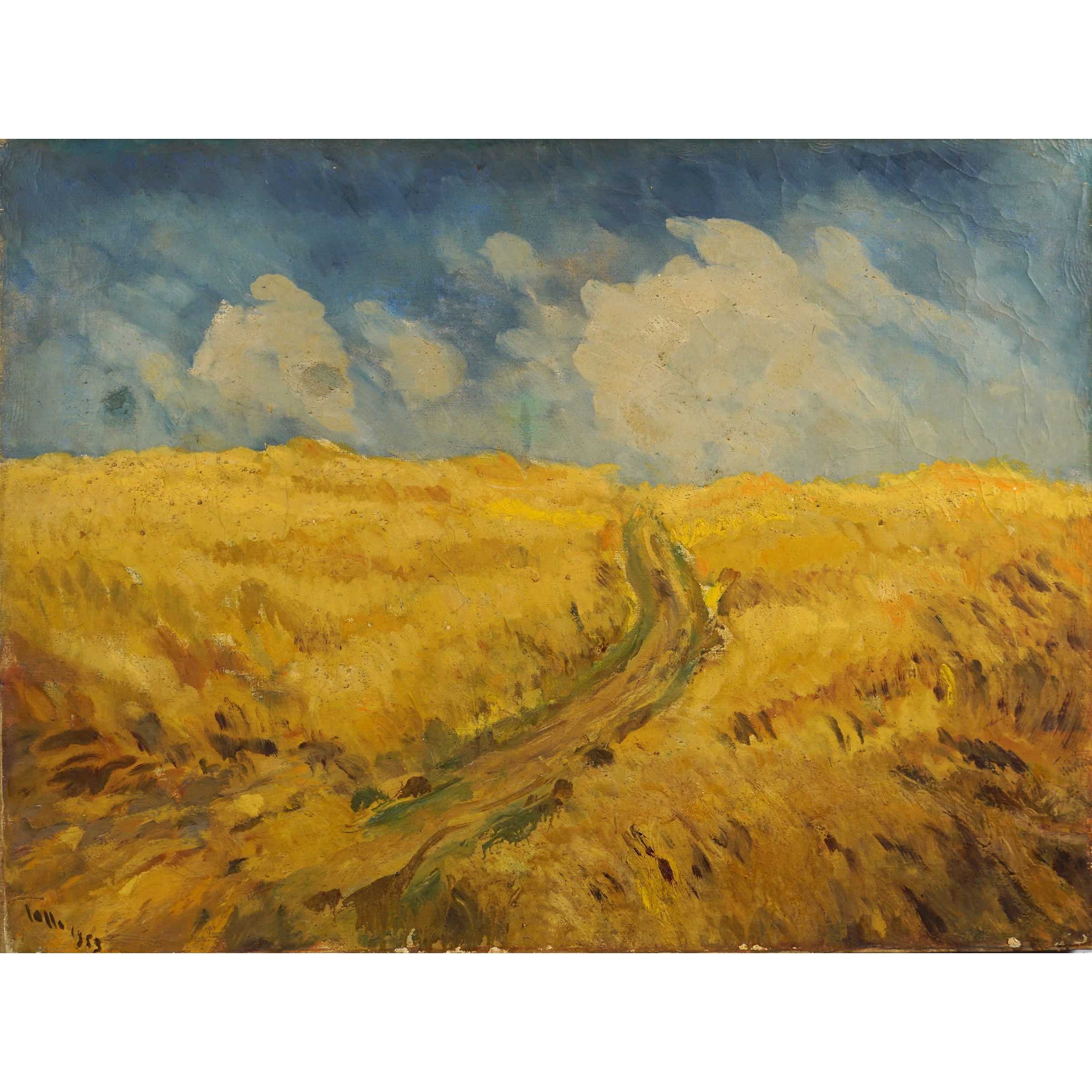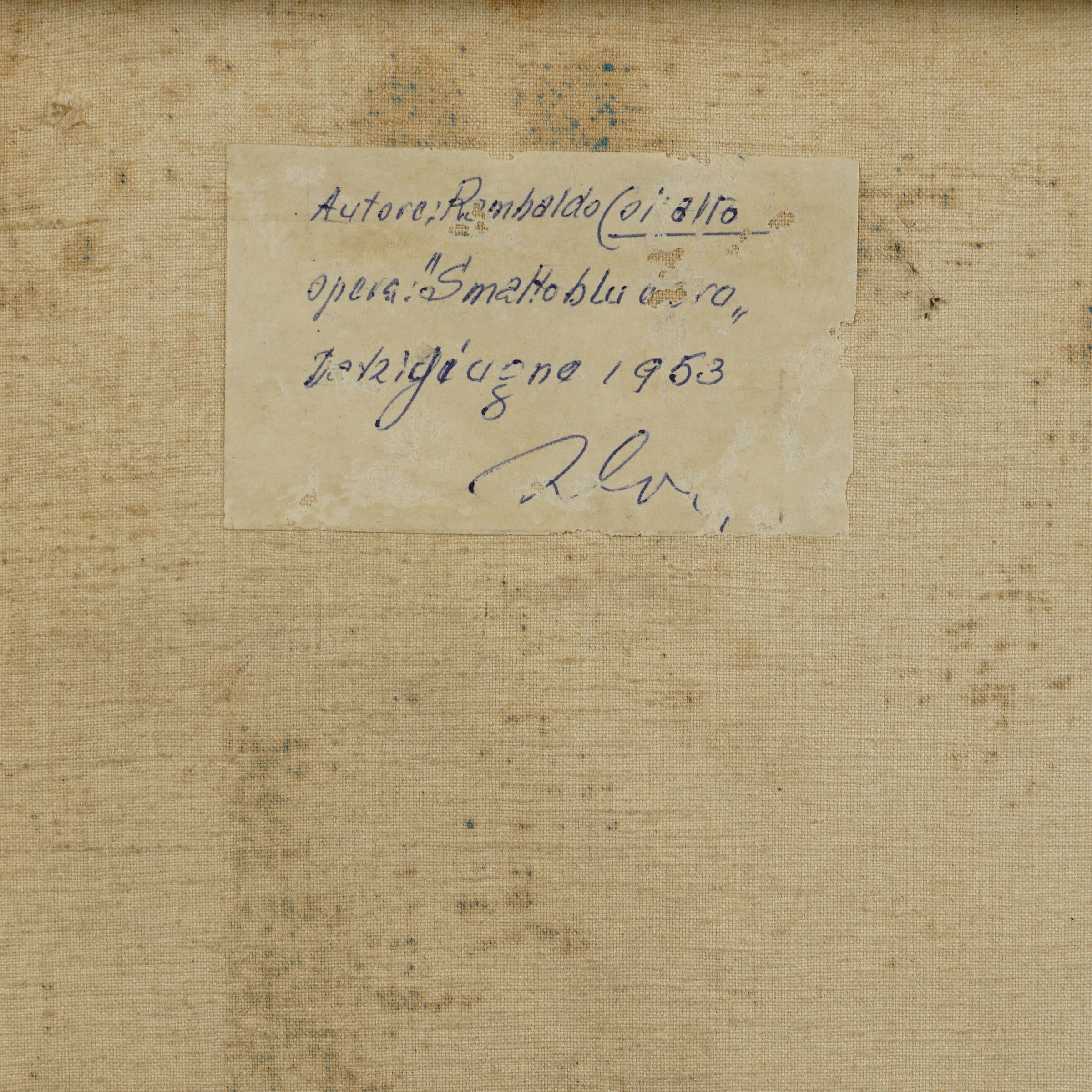 XX Sec. Smalto blu e oro, 1953, olio su tela, firmato Lollo in basso a sinistra