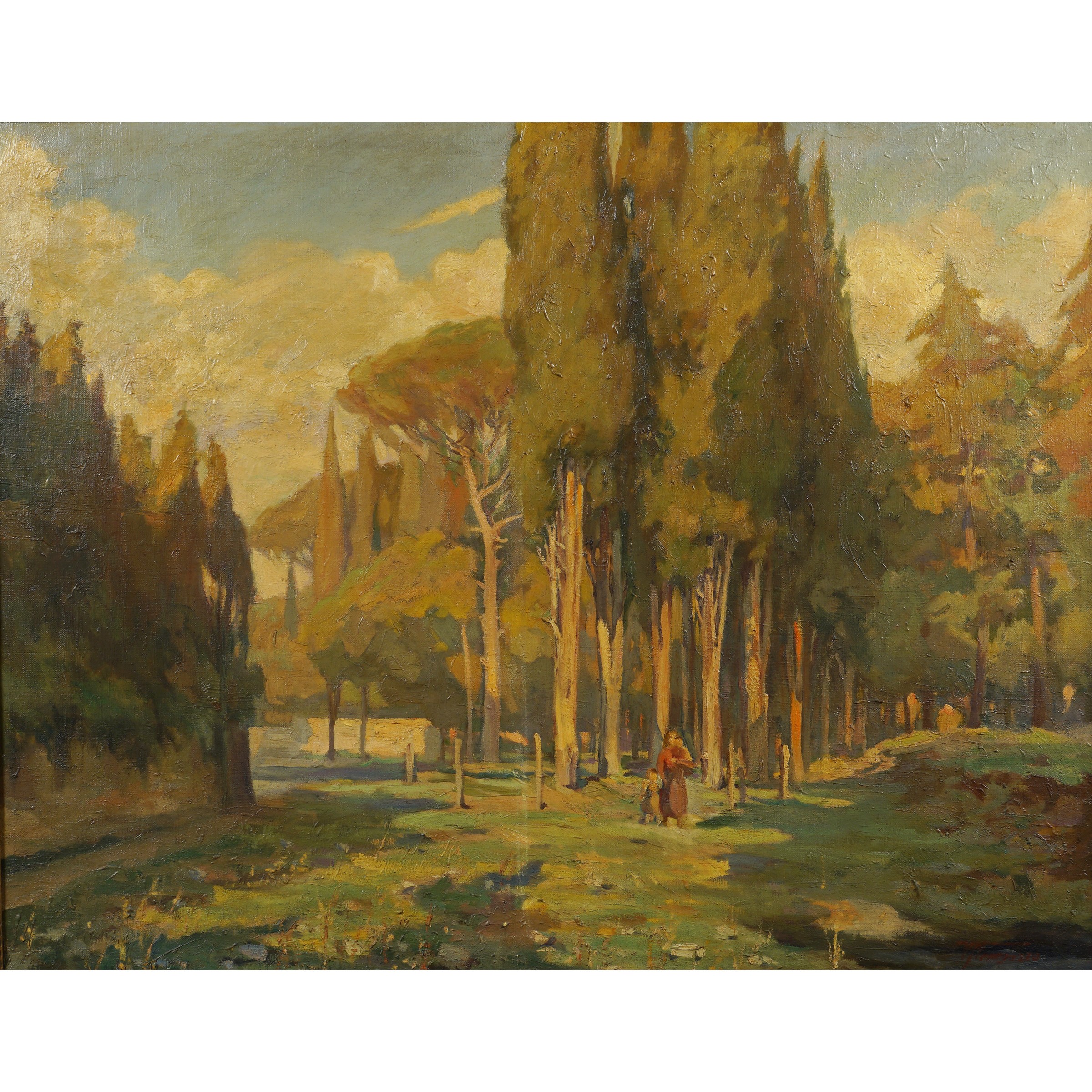 Venezia 1886 - Biella 1974 Paesaggio boschivo, olio su tela, firmato in basso a destra