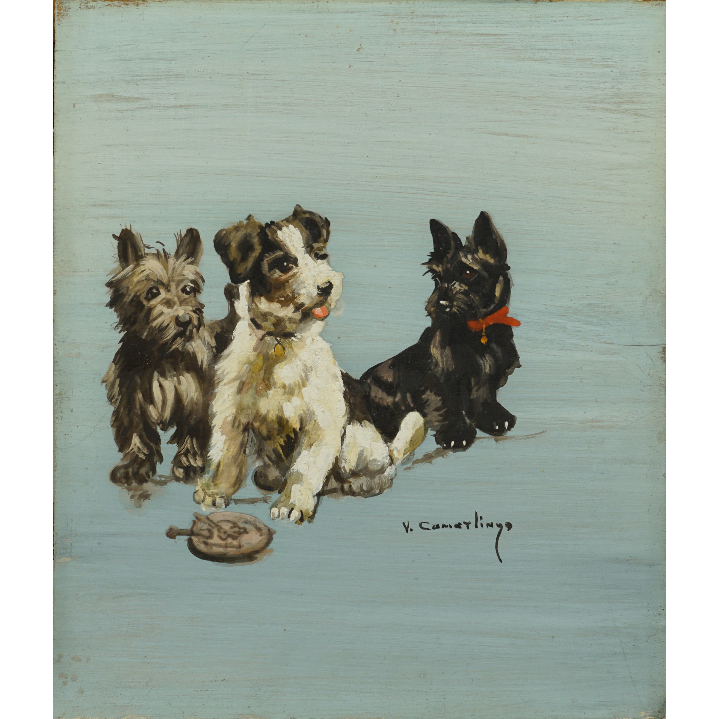 Italia, XX Sec. Cani, olio su tavola, firmato in basso a destra, entro cornice