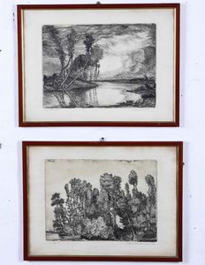Coppia di incisioni di Cino Bozzetti (1876-1949)