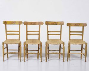 Quattro sedie in legno dipinto.