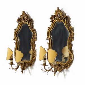 Coppia di ventoline in legno intagliato e dorato. XX secolo