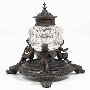 Calamaio in bronzo e cristallo