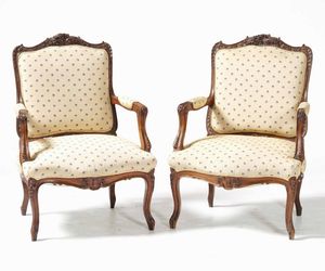 Coppia di poltrone in legno intagliato, Francia XIX secolo