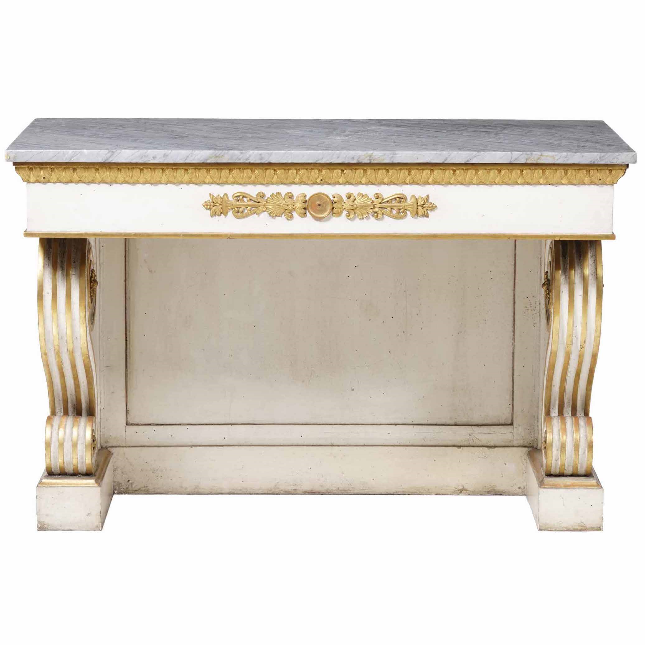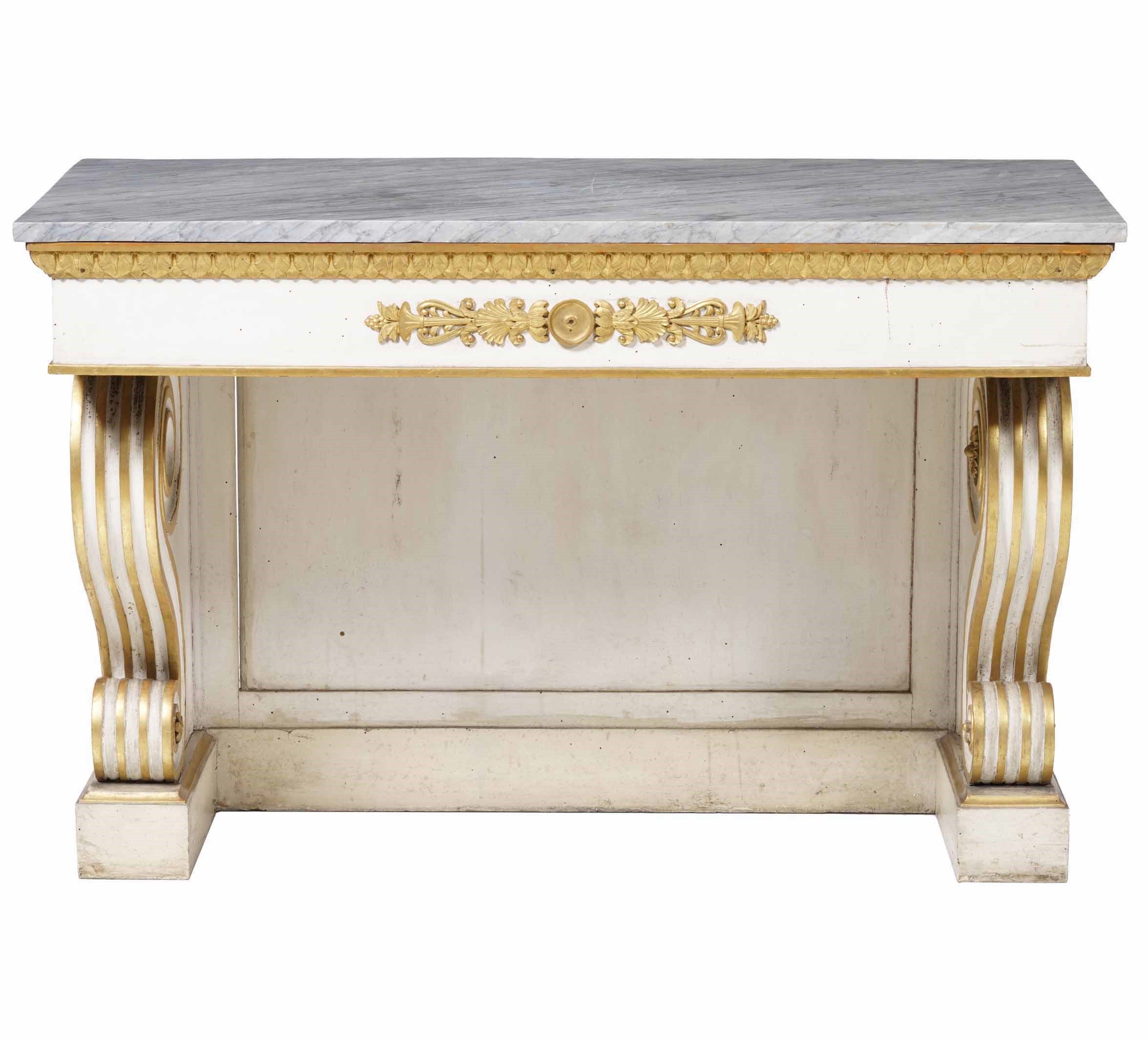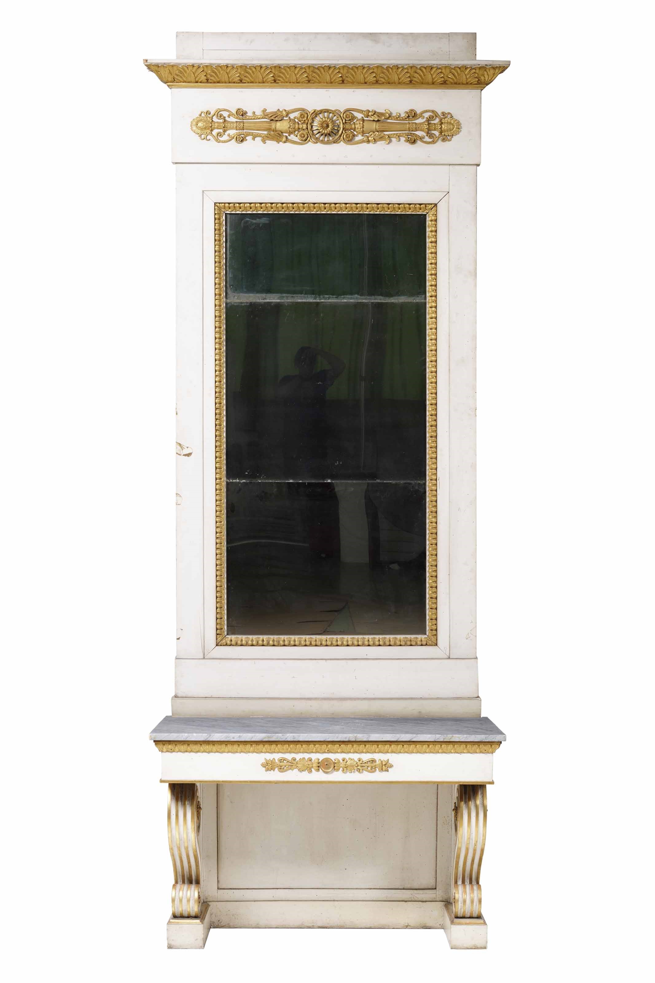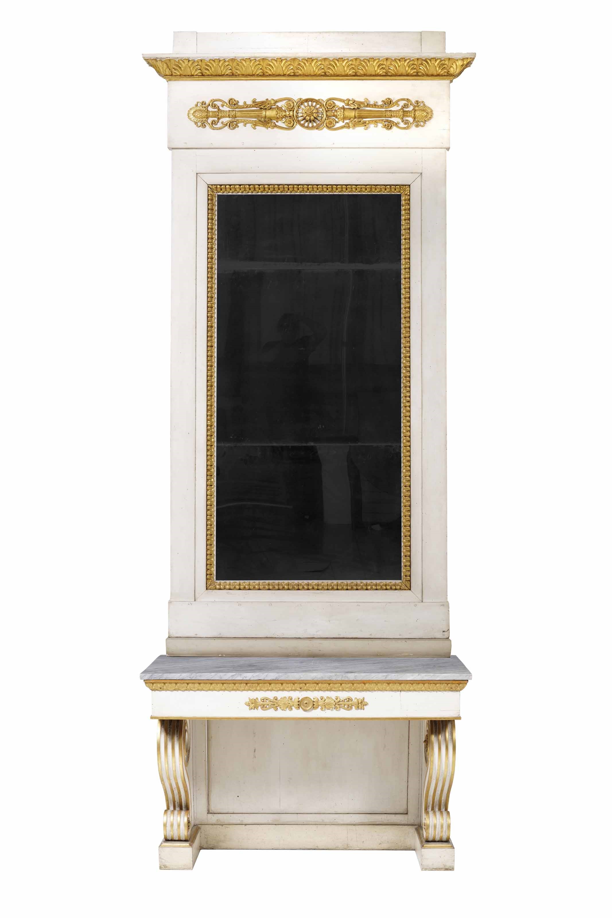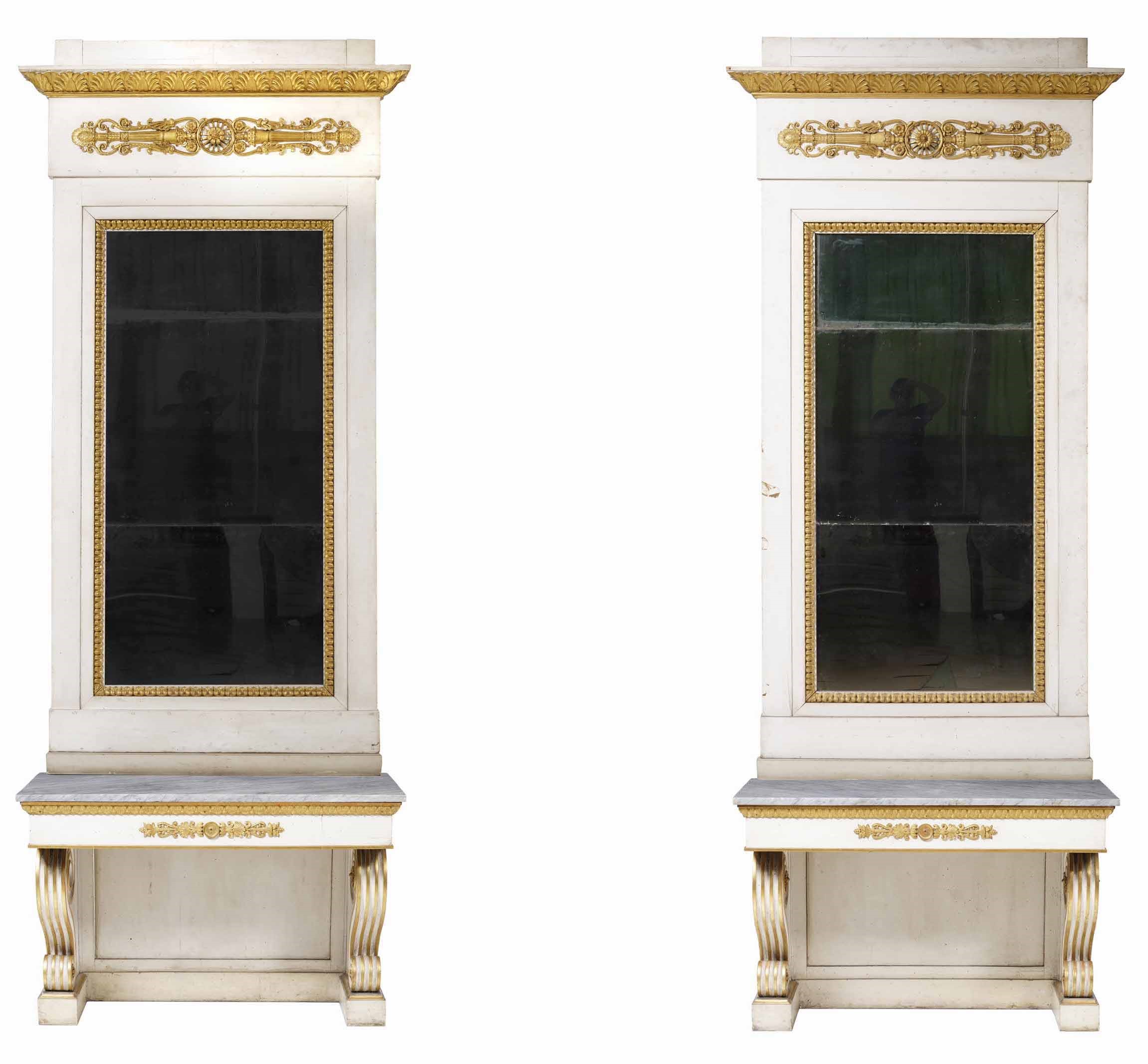 Coppia di consolles con specchiere in legno intagliato, laccato e dorato. XVIII-XIX [..]