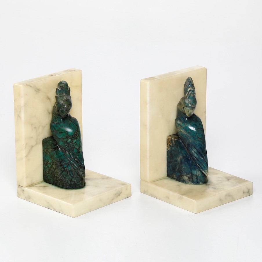 Coppia di fermalibri in marmo e pietra dura. XX secolo