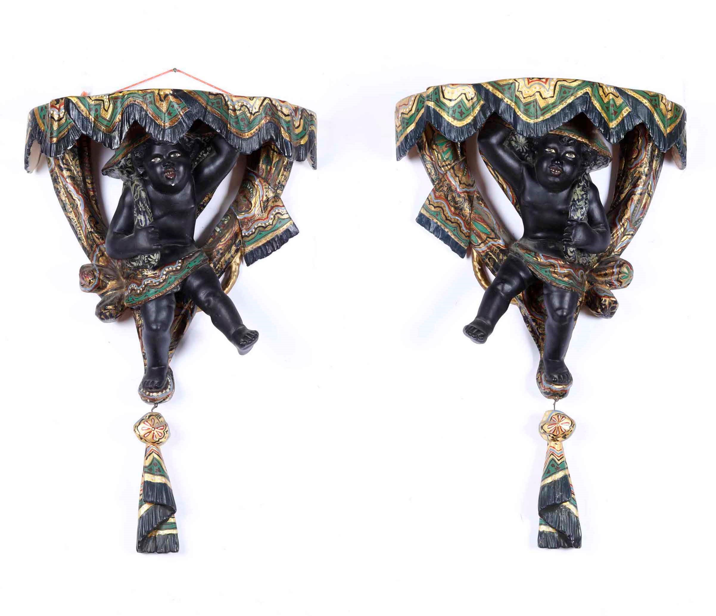 Coppia di mensole in legno intagliato e laccato. Venezia XIX secolo