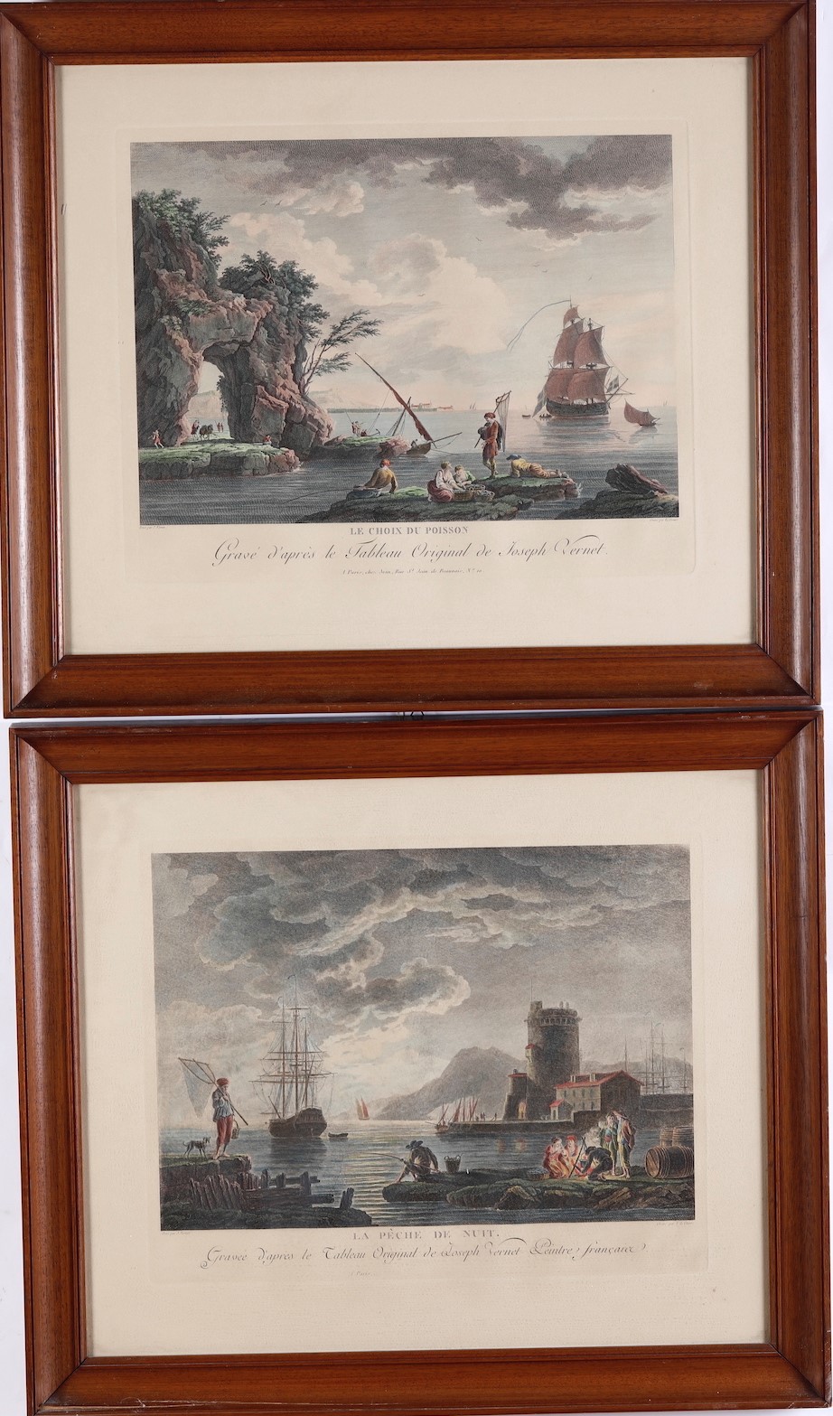 Coppia di stampe colorate, marine con personaggi (Joseph Vernet)