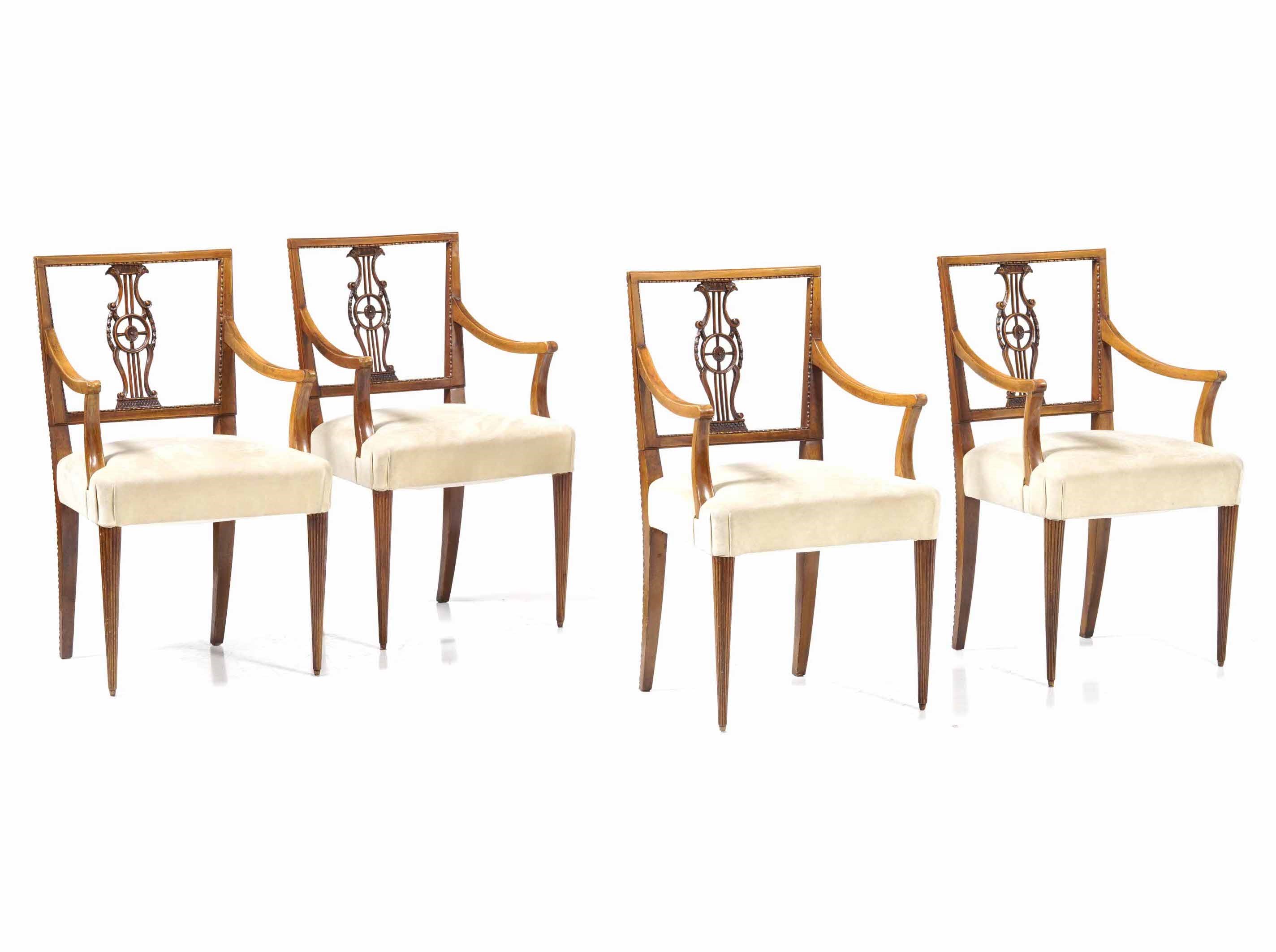 Gruppo di quattro poltrone con schienale a cartella traforata, XIX-XX secolo