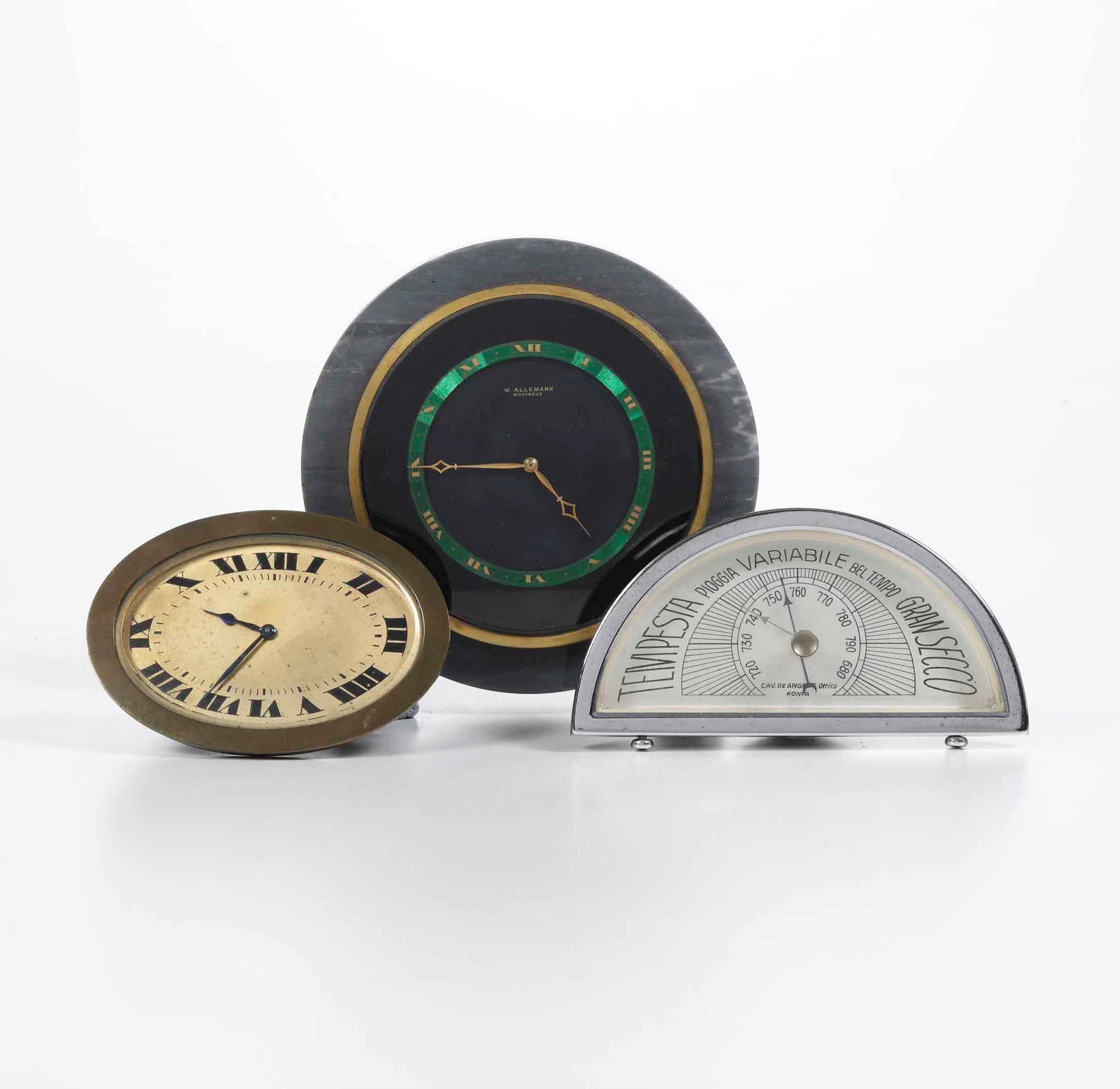 Lotto composto da due orologi e un barometro in metallo e pietre dure, uno marcato [..]