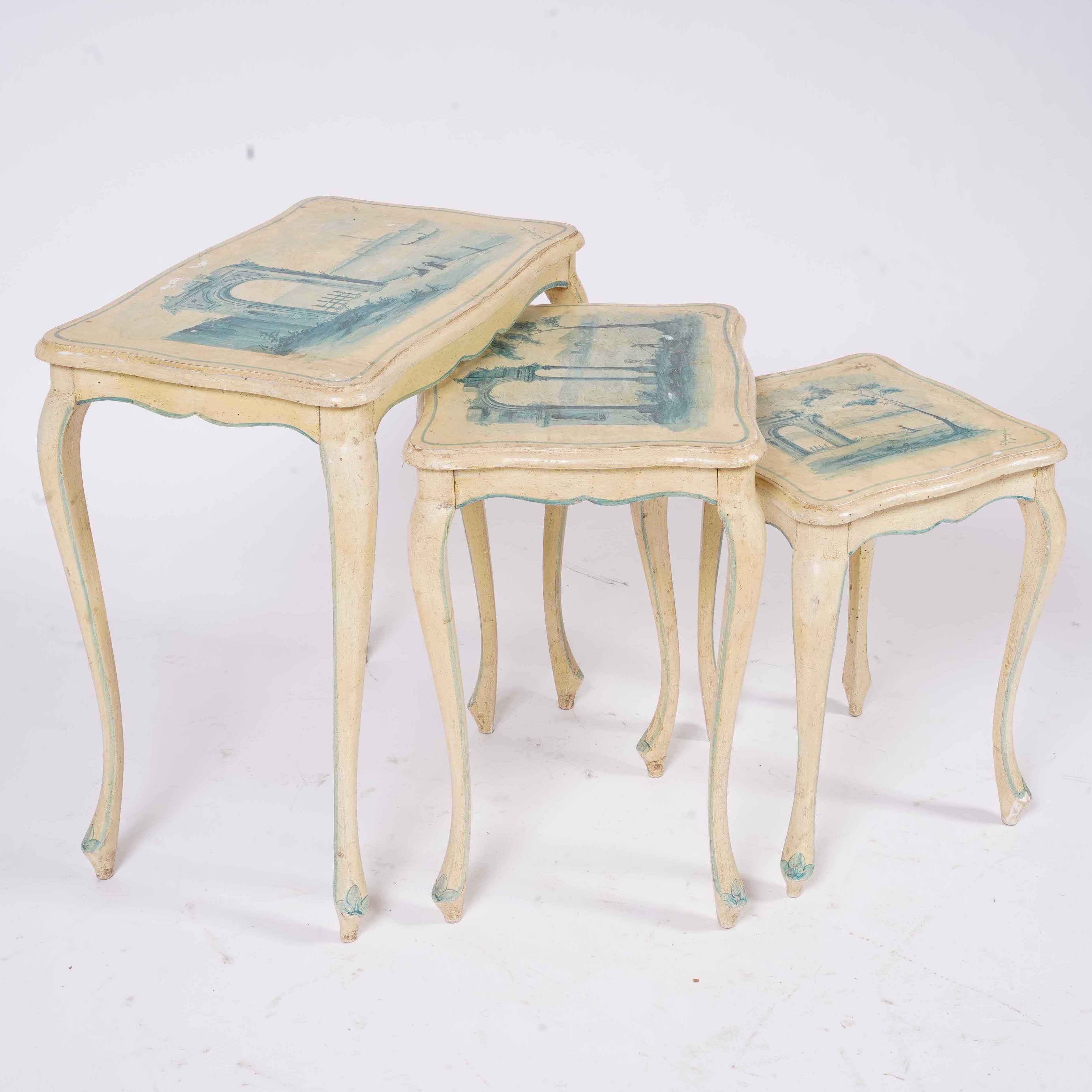 Lotto di tavolini a nido dipinti in monocromia