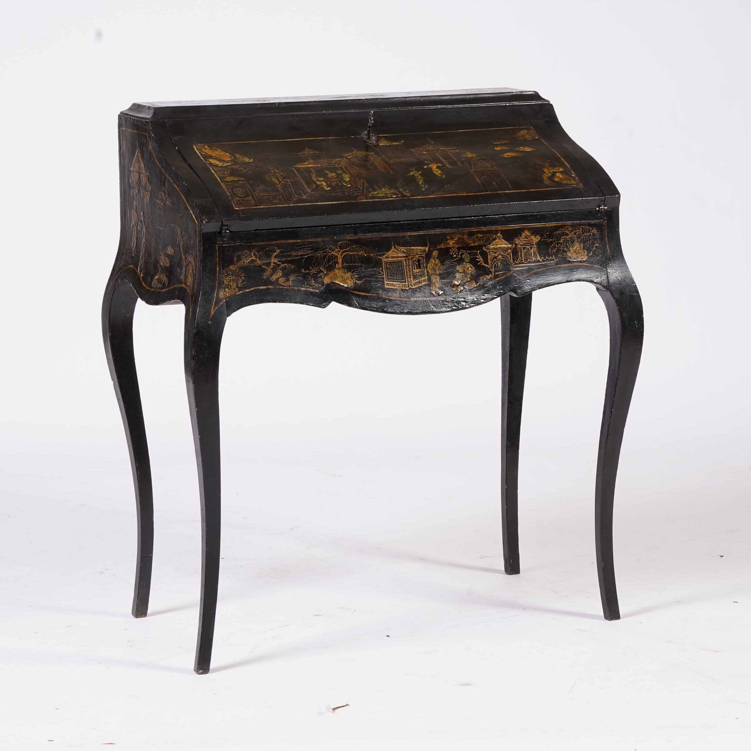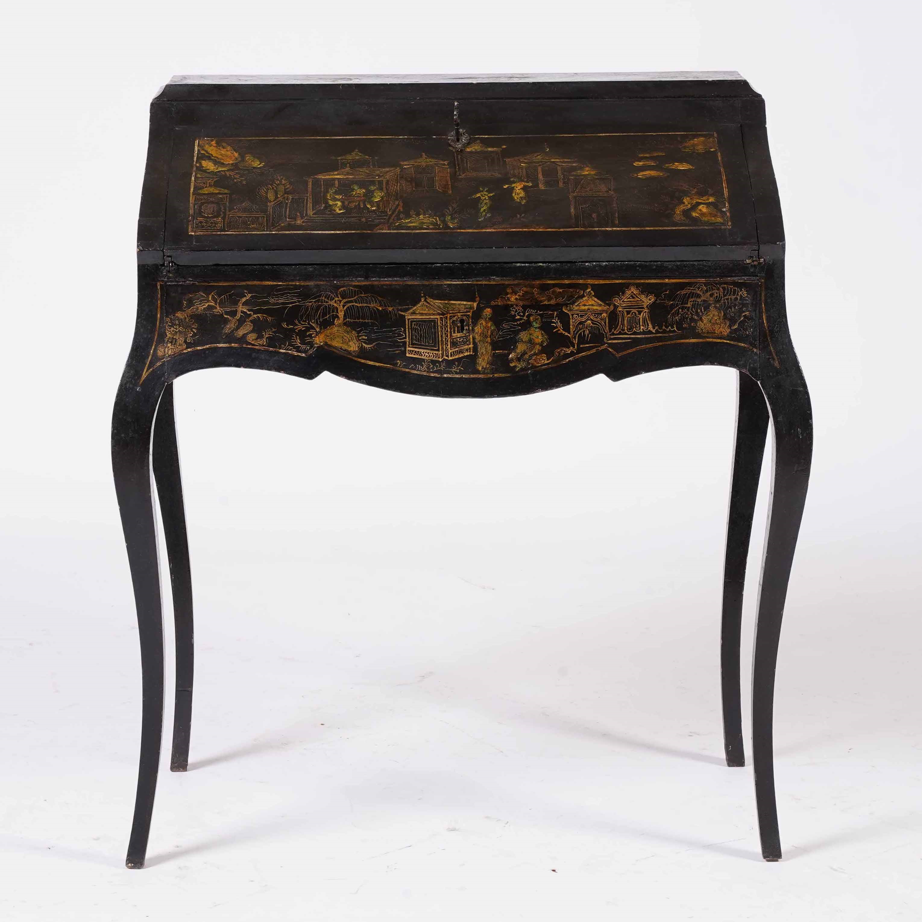 Scrittoio da centro decorato a chinoiserie su lacca nera. Probabilmente Inghilterra, [..]