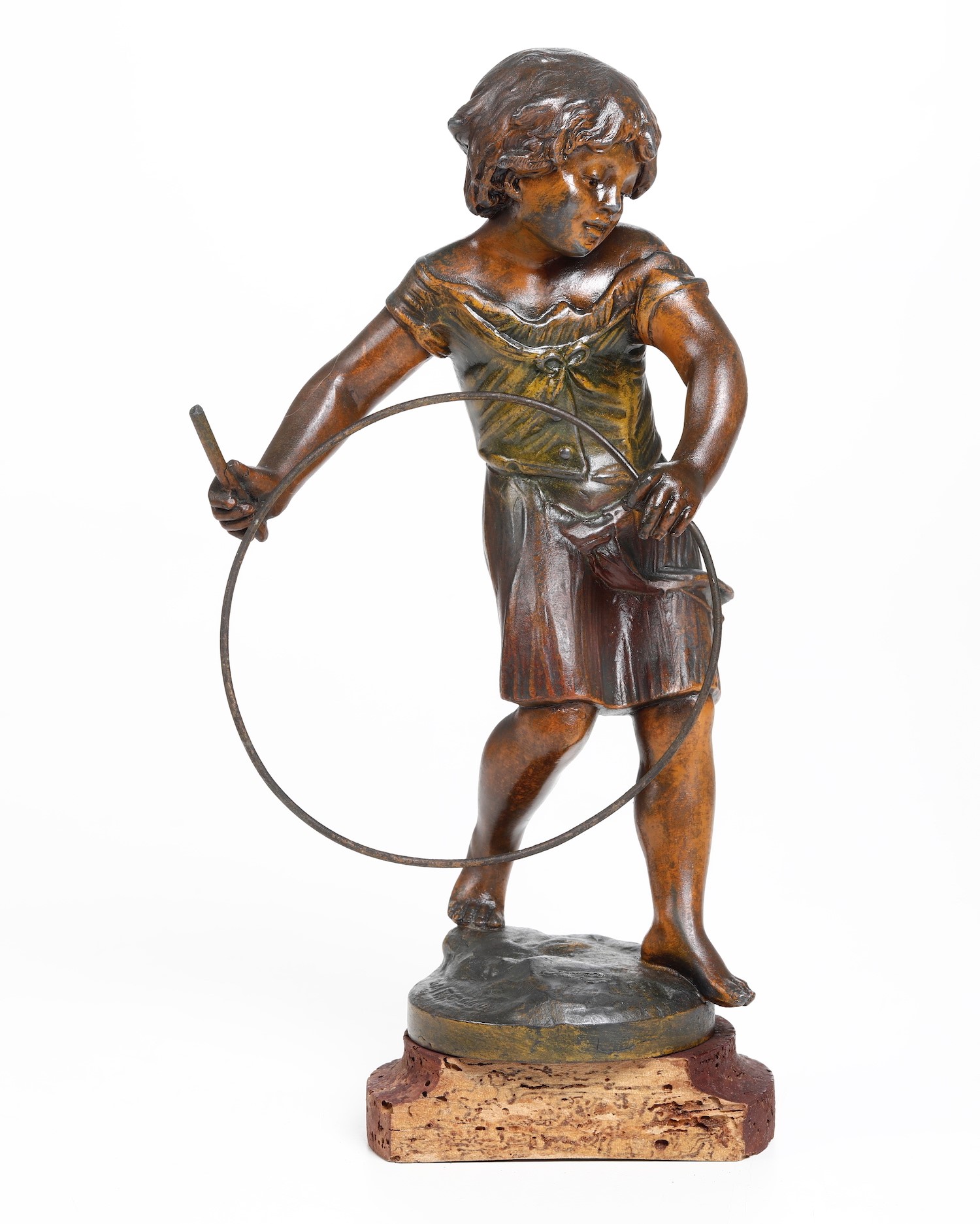 Scultura raffigurante bambina in legno e bronzo firmata August Moreau