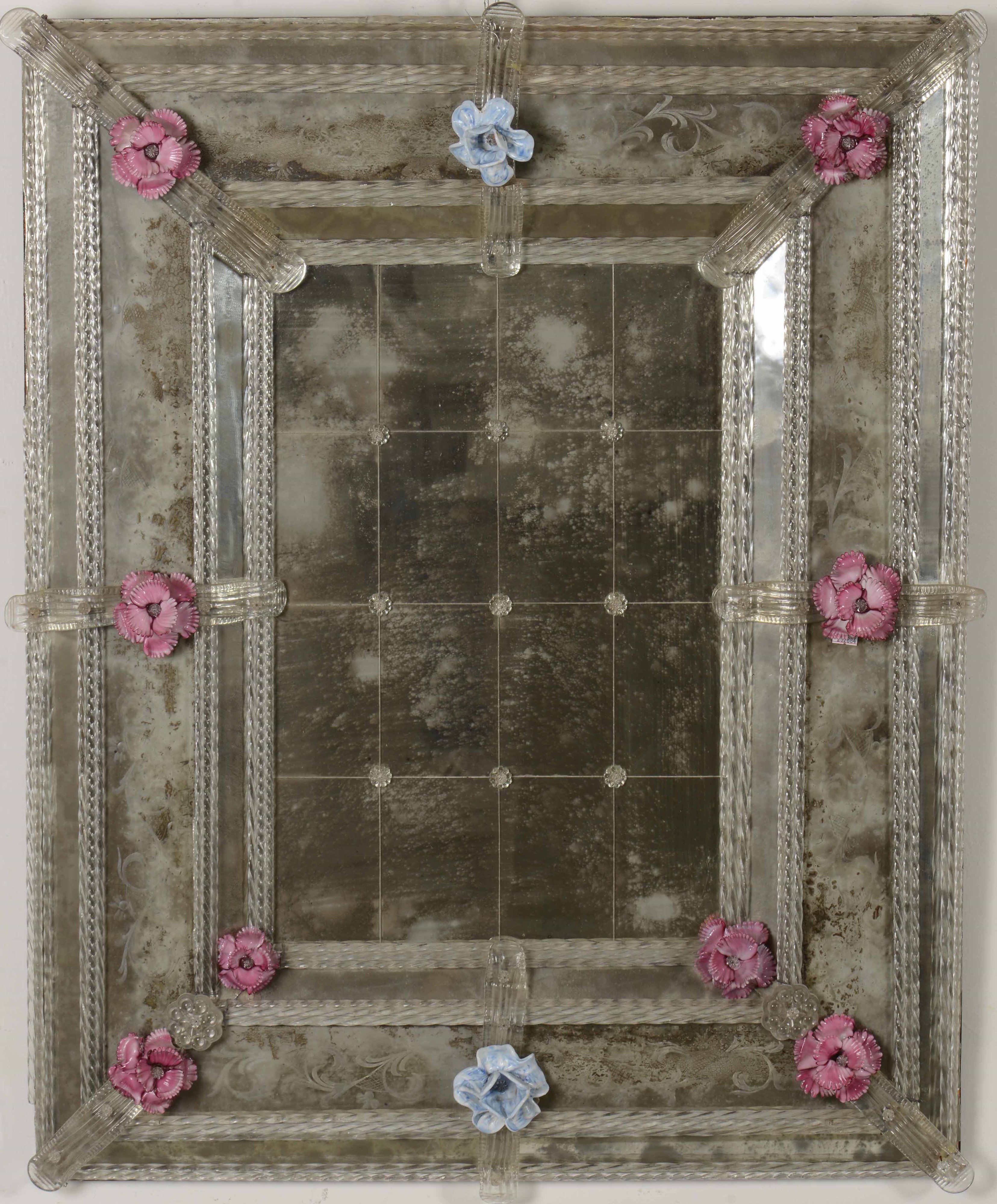 Specchiera a doppio ordine in vetro di Murano