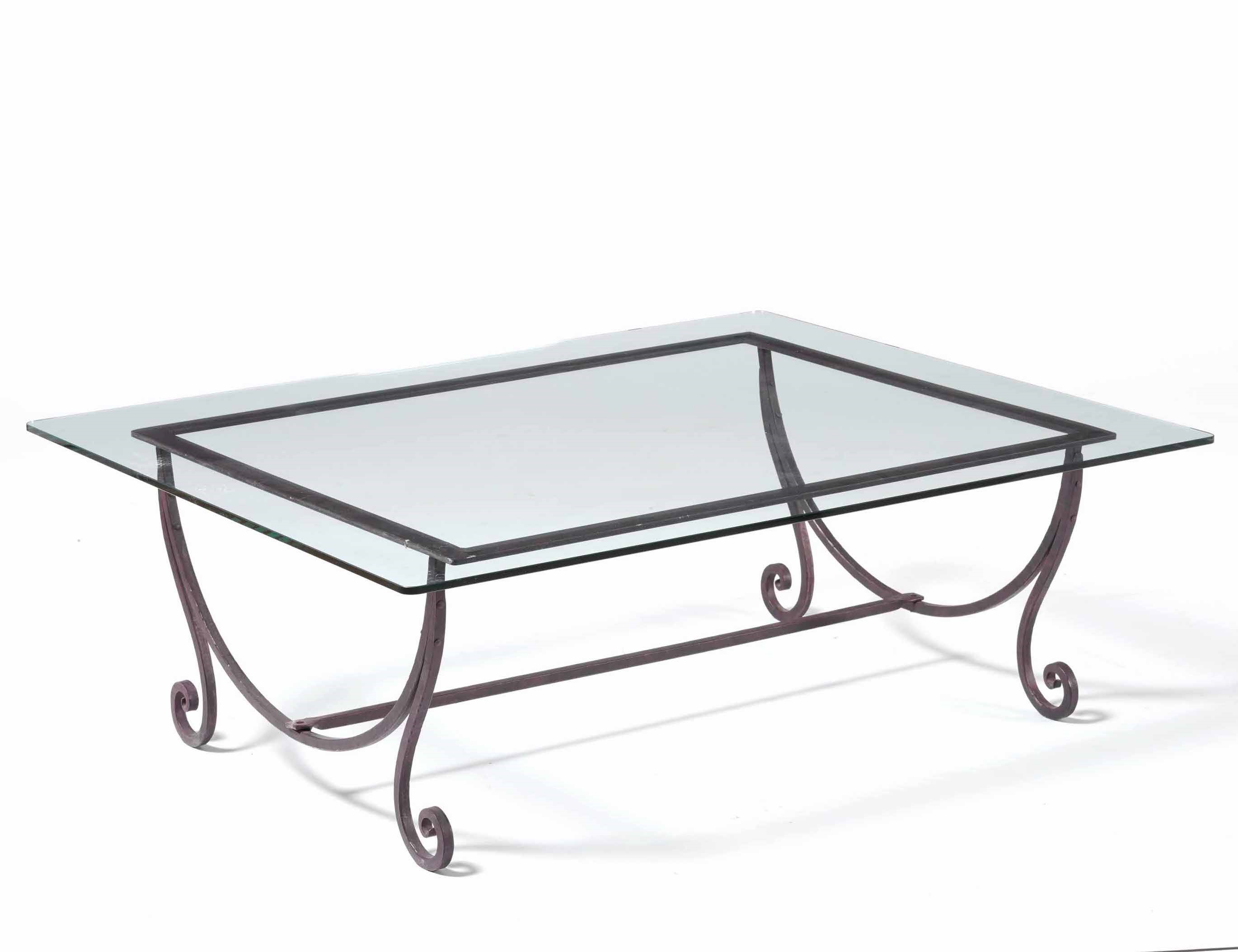 Tavolo basso con struttura in ferro battuto e piano in vetro