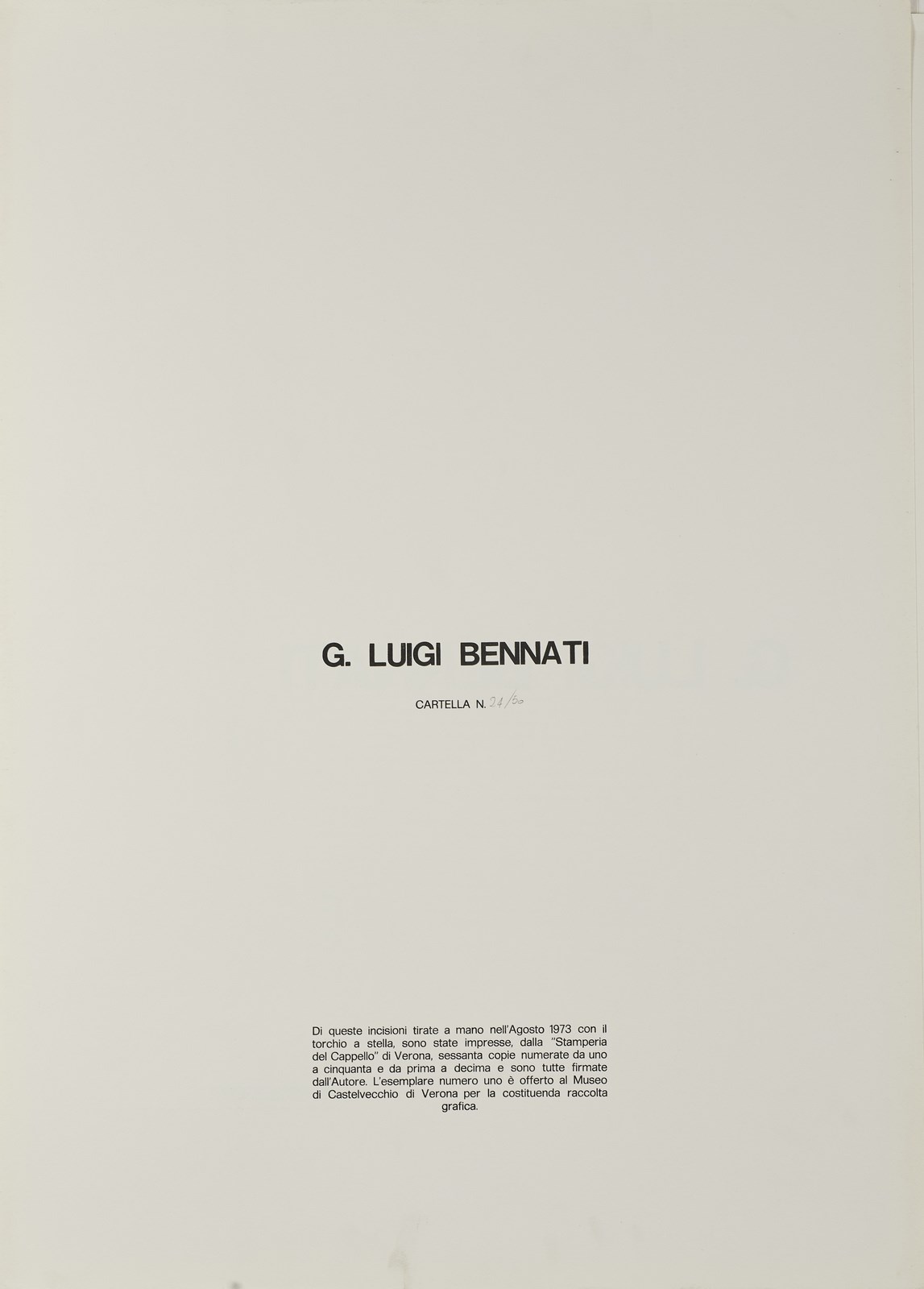 24/50. Tiratura e firma in basso a matita. Timbro a secco Comune di Verona Musei d'arte. Dimensioni lastre: 42,5x27,5 cm, 45x27,5 cm, 42x28 cm. Edizione totale: 60 esemplari numerata da 1 a 50 + 10 esemplari numerati da I a X.