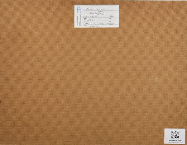 Firma in basso a destra. Al retro cartiglio descrittivo Galleria Turelli, Pistoia. Provenienza: Galleria Turelli, Collezione privata. Pubblicazione: Alla fine del XX secolo. Verso il terzo millennio, Galleria Turelli, Pistoia, 1999, pag. 37.