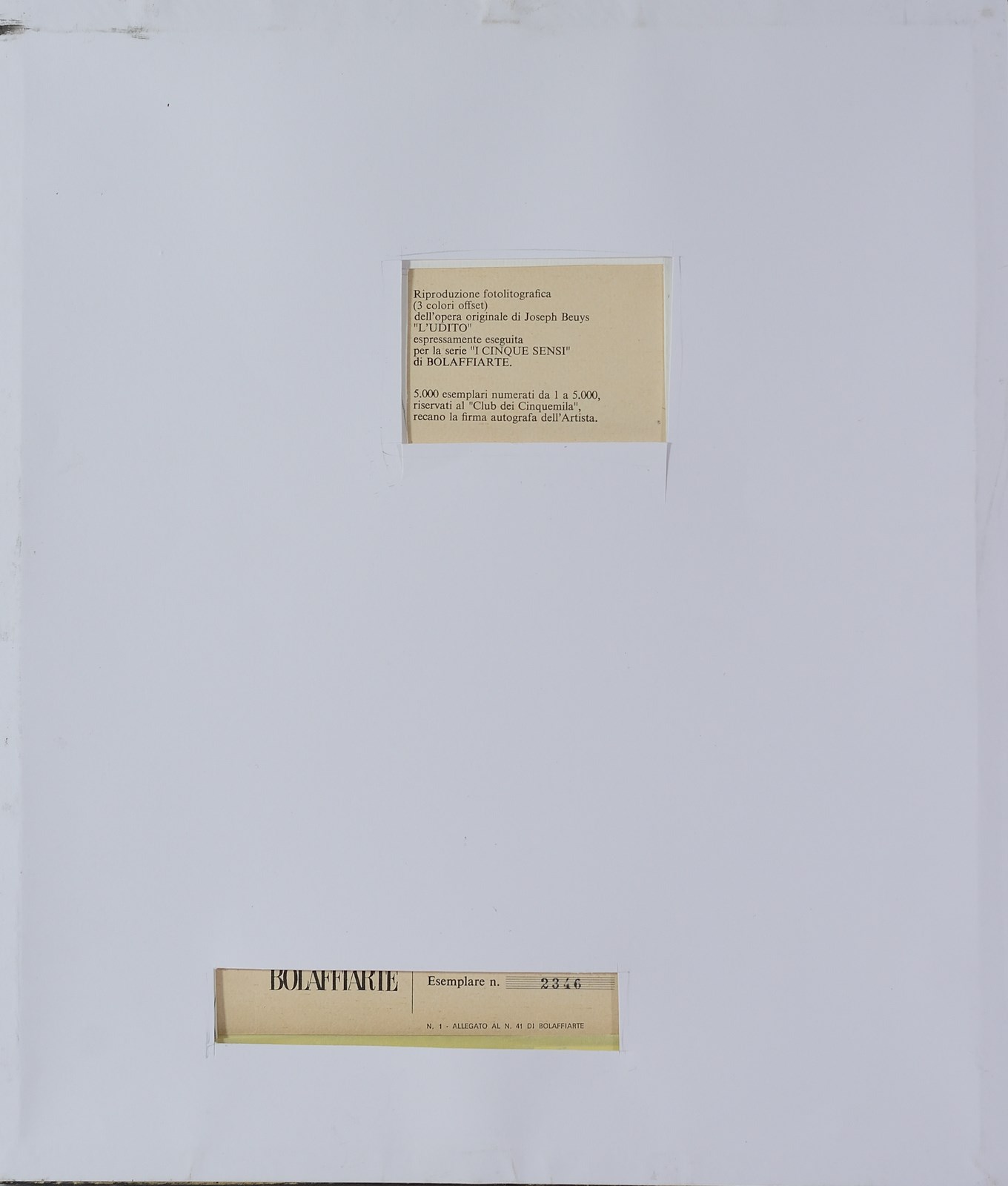 2346/5000. Edizione Bolaffi Arte. Firma in basso a matita. Tiratura al retro.