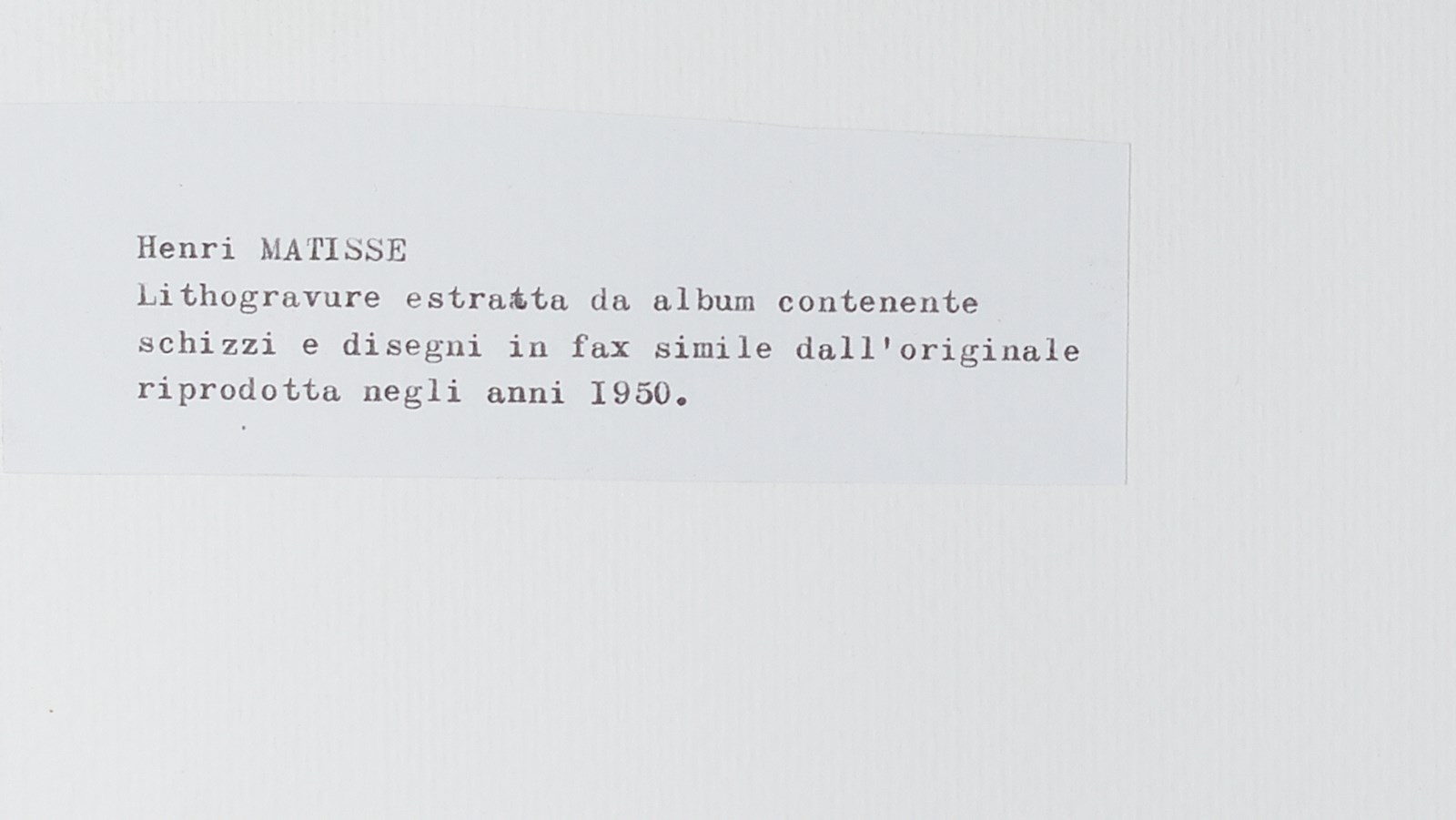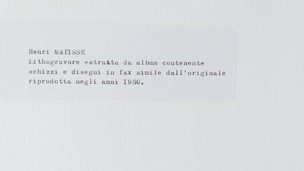 Estratta dall'album di riproduzioni a stampa di schizzi e disegni edito nel 1950. Monogramma a stampa in basso a sinistra.