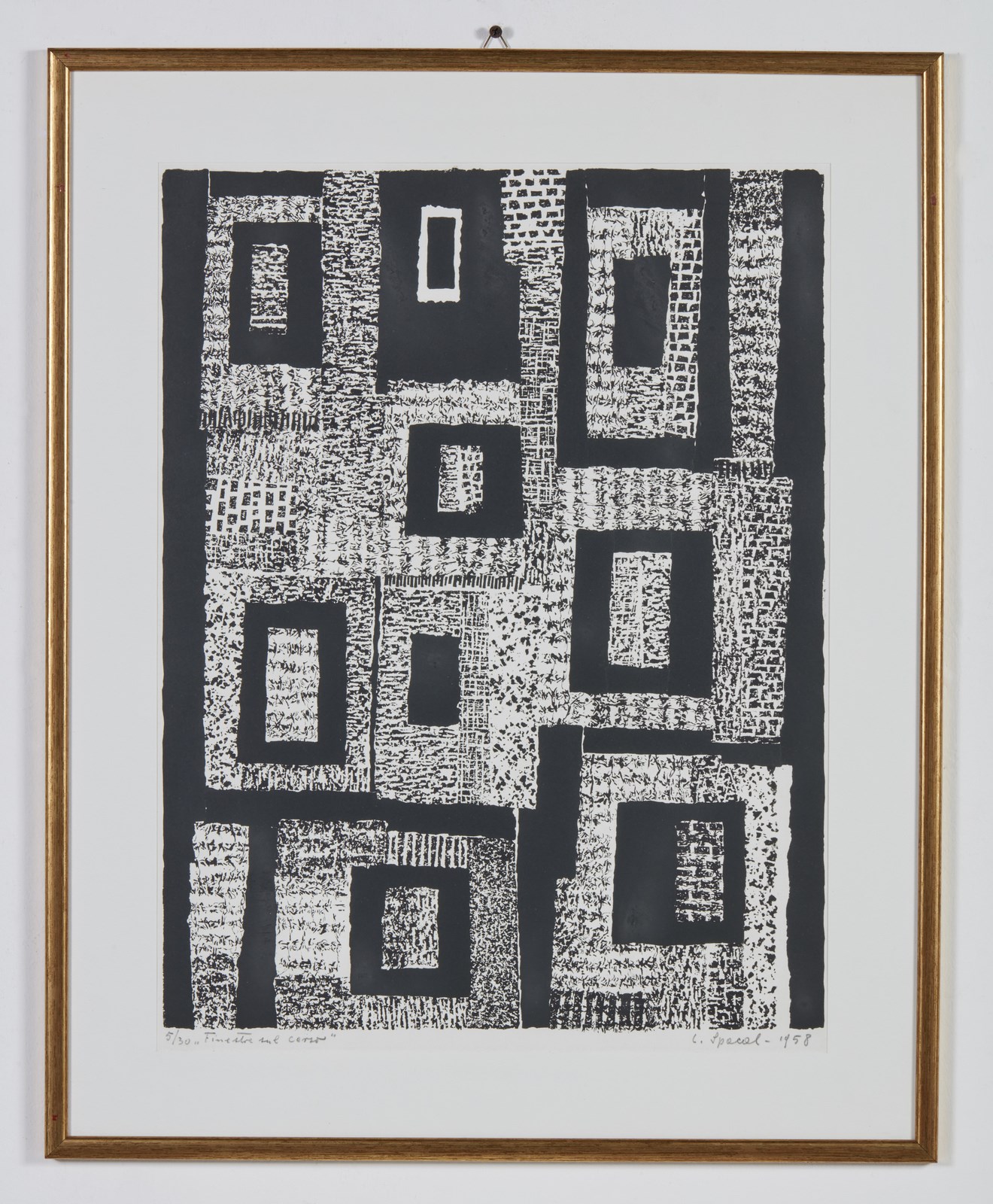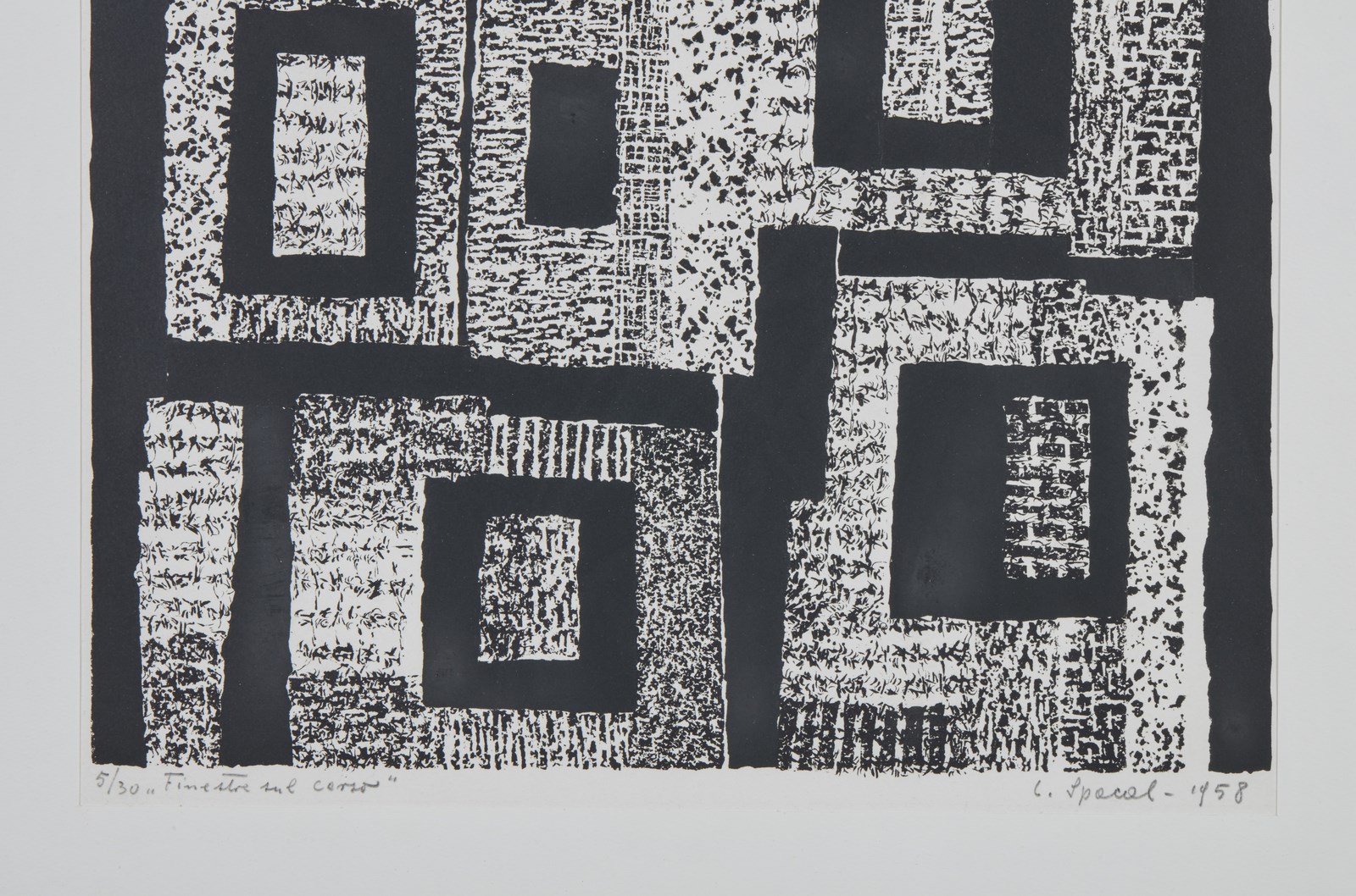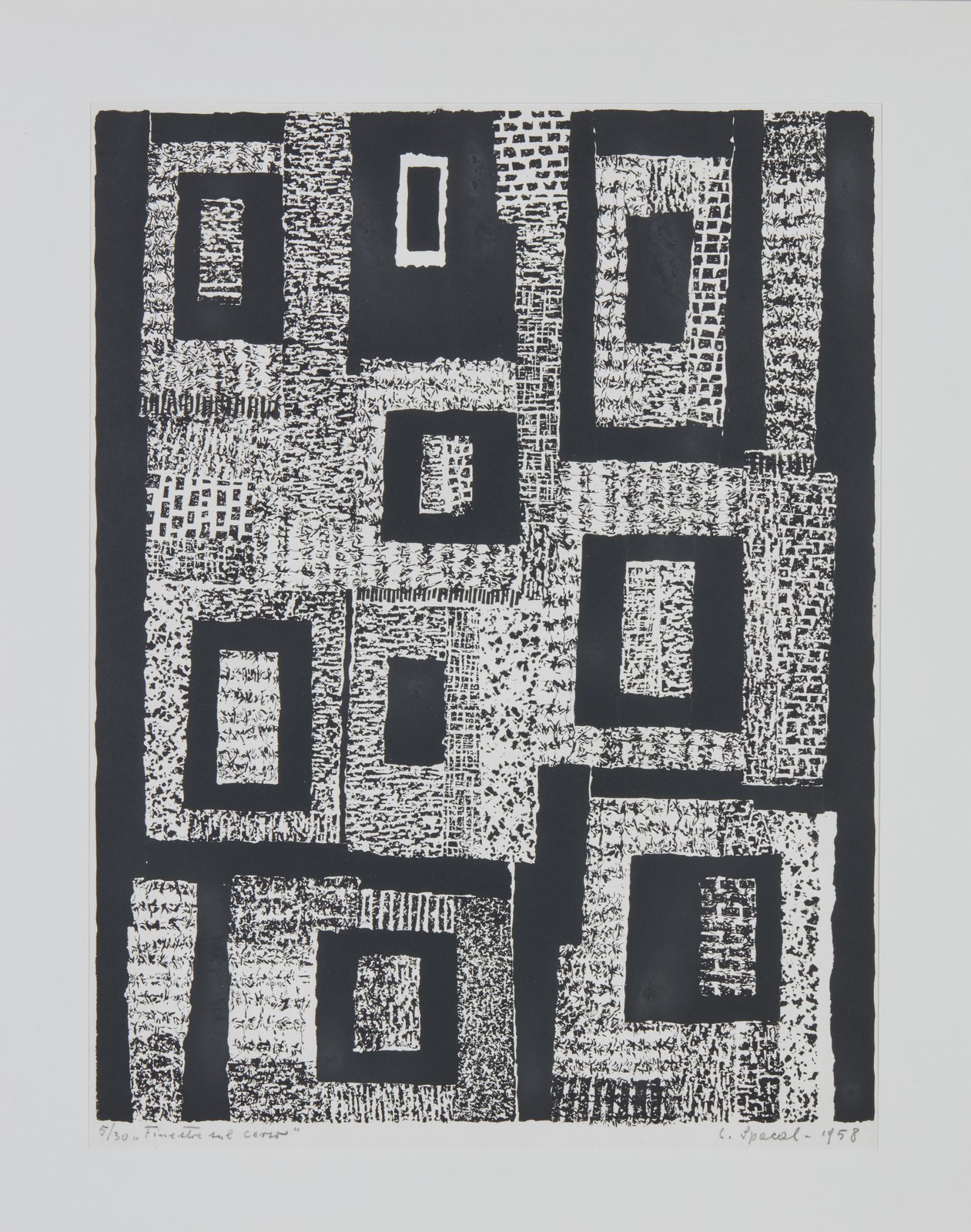 5/30. Tiratura e titolo a matita in basso a sinistra. Firma e anno a matita in basso a destra. Dimensione lastra: 52x39.5 cm. Esposizione: Luigi Spacal - opere grafiche, 13 Aprile - 14 Maggio 1983, Galerie Rive Gauche, Roma.