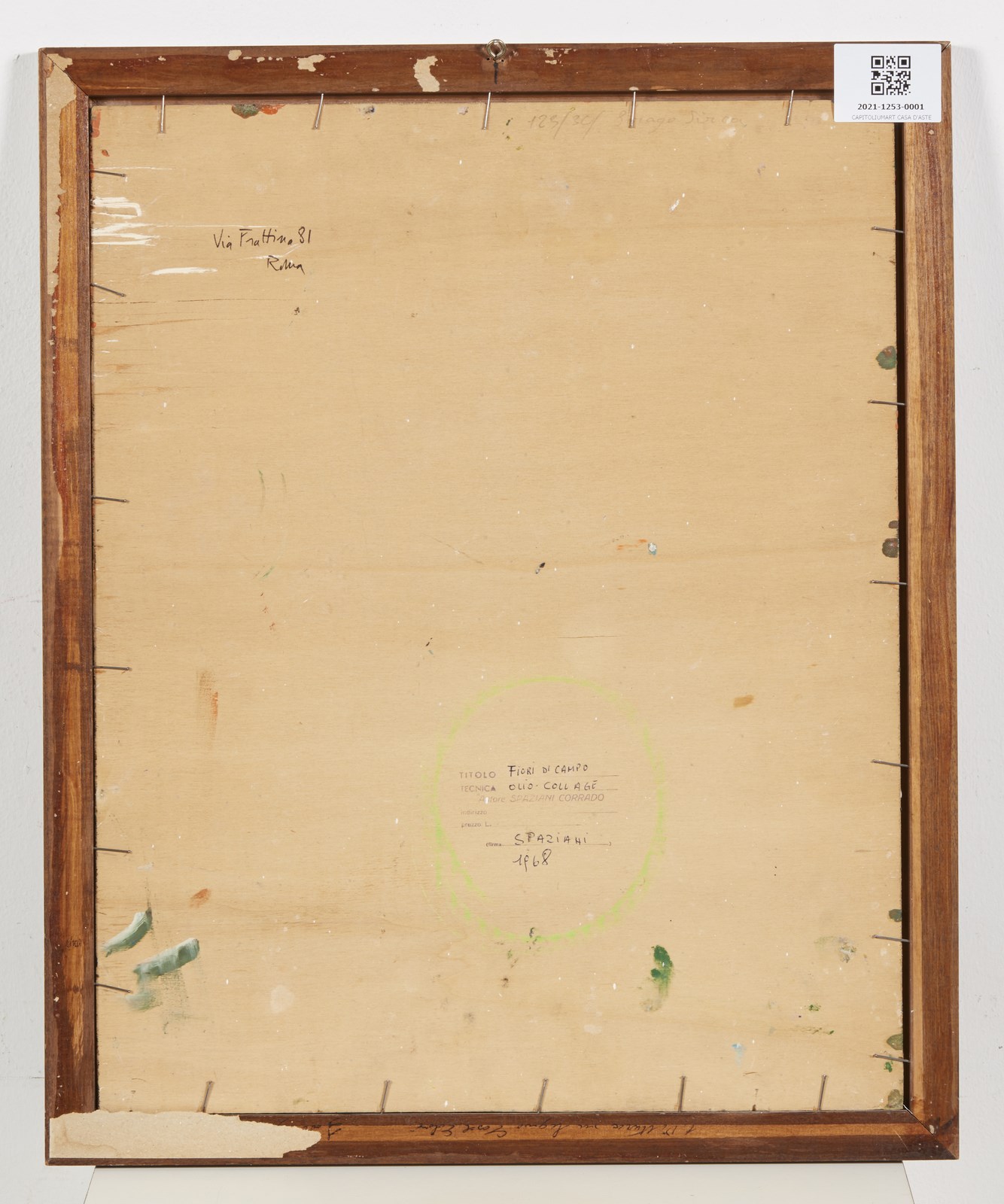 Al retro titolo, firma e anno. Provenienza: Collezione Marcello Marchesi, Roma. Difetti.