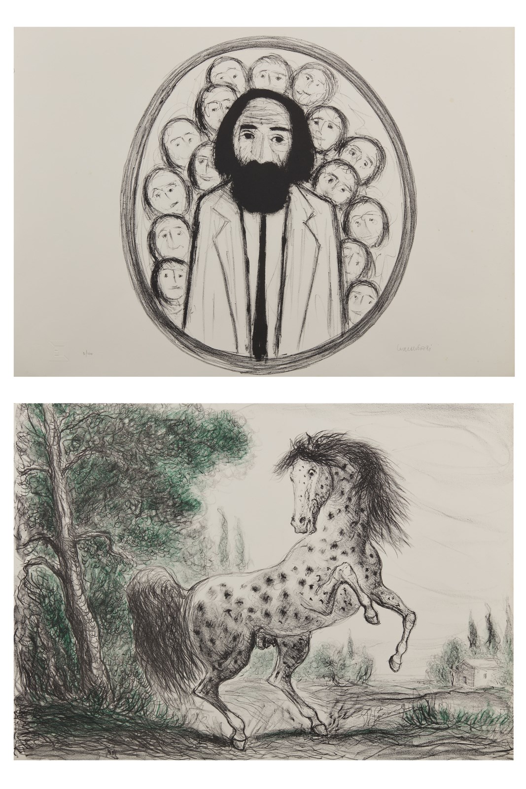 1. Walter Pozzi. 3/100. Tiratura a matita in basso a sinistra. Firma a matita in basso al centro. Timbro a secco Litoinvest. 2. Giovan francesco Gonzaga. 55/100. Tiratura a matita in basso a sinistra. Firma a matita in basso al centro. Timbro a secco Litoinvest.
