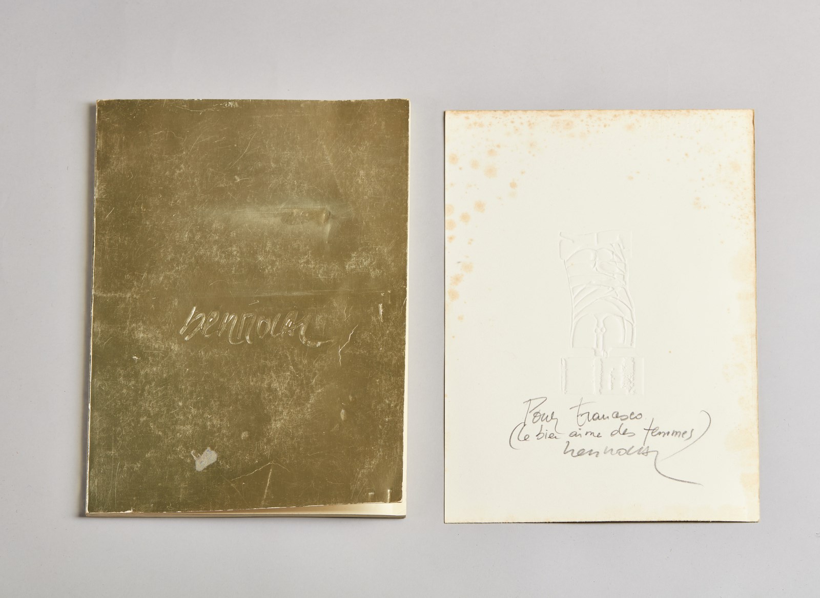 1. Calcografia Mini David: Firma e dedica in basso a matita. Dimensioni: 34x24cm. 2. Libretto descrittivo con le mini sculture di Berrocal. Difetti.