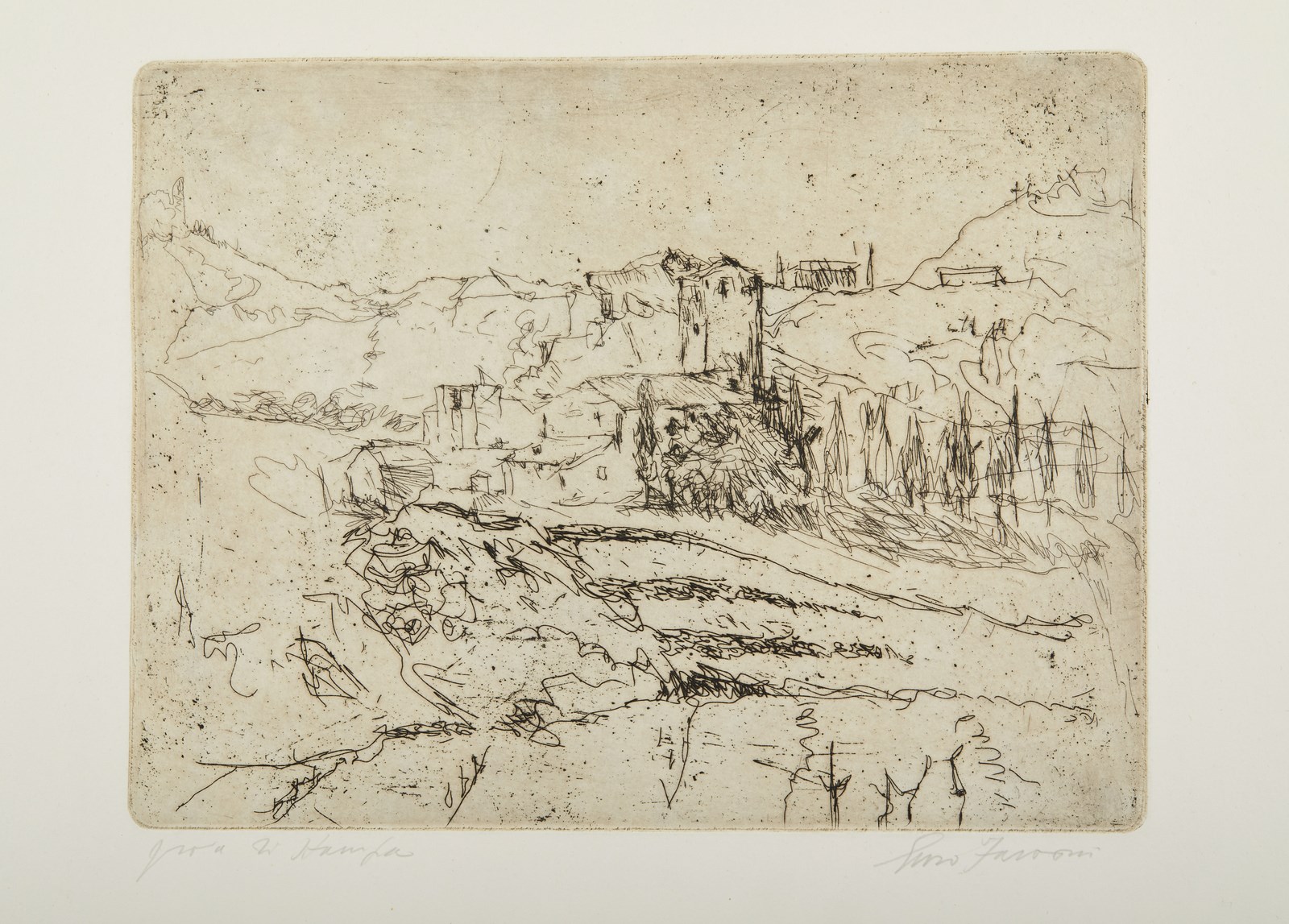 Prova di stampa. Tiratura e firma in basso a matita. Dimensioni lastra: 24,5x32,5 cm.